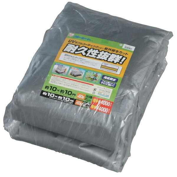 UVシート シート 10m×10m #4000 40畳 アイリスオーヤマ 10×10 m 養生 シルバー 紫外線 アルミ ハトメ 耐候性 防水 厚手 耐久性 耐水 保護 養生シート 車 カバー UVカット 作業 日よけ 雨よけ 荷台 台風 保護 BU40-1010