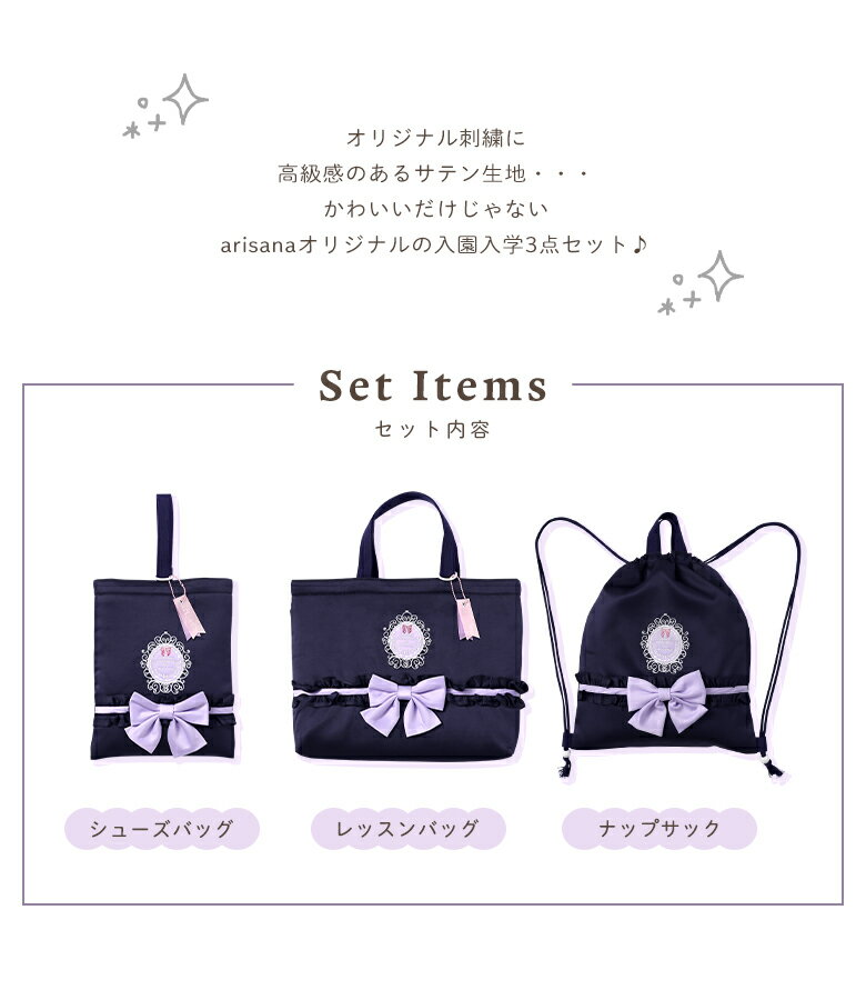メーカー希望小売価格はメーカーカタログに基づいて掲載していますarisana商品にぴったり♪なギフトラピングサービス(有料)はこちら↓↓ [ 袋 3点セット 子ども ピアノ お稽古バッグ 習い事 バック 通学 通園 トートバッグ レッスンバッグ シューズバッグ 体操着袋 図書袋 入園入学準備 入園準備 入学準備 入園グッズ キッズ 必須 入園入学3点セット ][ribbon_satin]もっと見る もっと見る もっと見る ▼ 雨の日も安心♪バッグカバーはこちら ▼ 返品(返金)について こちらのセットページの販売価格は、セット販売時の特別価格となっております。 よって、一部商品を返品される場合、残りの商品は単品販売時の通常価格に修正させていただきます。 素材 表地:ポリエステル 100% 裏地:ポリエステル 65% / コットン 35% お洗濯 ●ご家庭で洗濯可能です。お洗濯の際は、洗濯表示をご確認ください。 ●色移りする場合がございますので、他の物と分けて洗濯してください。 ●塩素系漂白剤、蛍光増白剤入り洗剤などの漂白系洗剤のご使用はお避けください。 注意事項 ●ブラウザ、モニターの色調により実物の商品とカラーが異なる場合がございます予めご了承くださいませ。 ●海外製のため生産ロットにより生地や色味が異なる場合がございます。