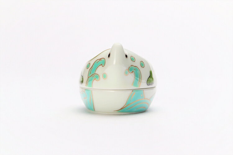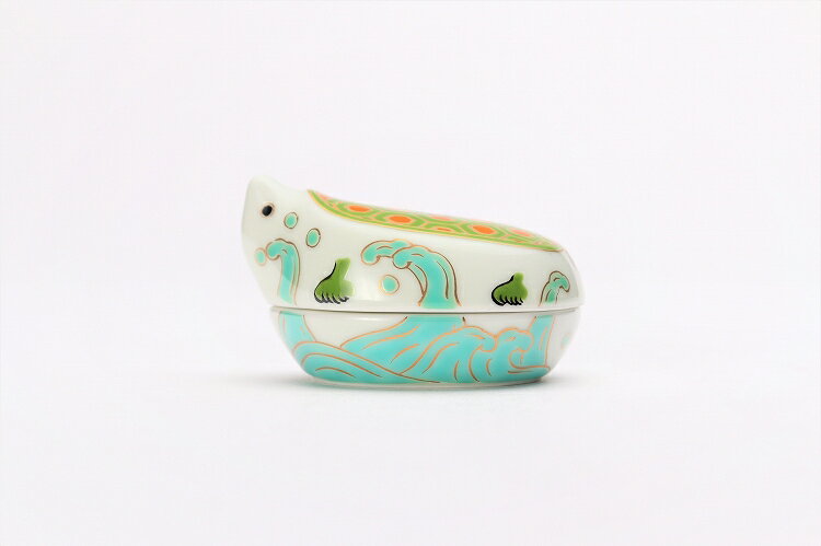 【有田焼 幸楽窯 錦宝亀珍味入】有田焼 磁器 蓋物 薬味入れ 珍味入れ 変形 亀型 緑 お正月 薬味 珍味 柚子こしょう おしゃれ 和食器 ギフト 引き出物 内祝い プレゼント