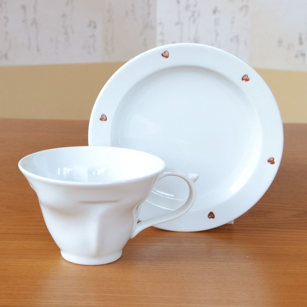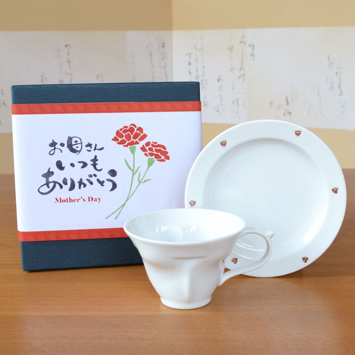 母の日ギフト ハートが浮かび上がるコーヒーカップ 有田焼 水晶彫り ハートinクローバー赤 メッセージカード 母の日熨斗 付き