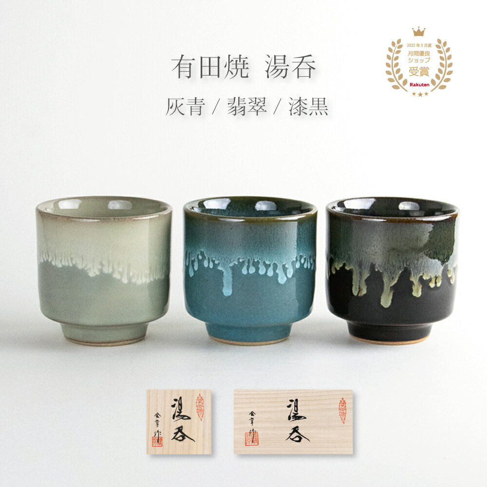 湯呑み コップ 湯呑茶碗 有田焼 プレゼント おしゃれ 専用木箱付き 漆黒(黒) 翡翠(緑)灰青(グレー)