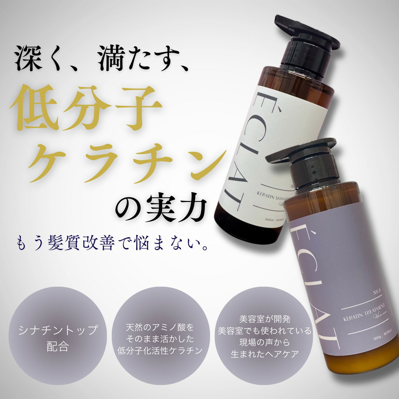 商品詳細 商品名 エクラケラチンシャンプー&エクラケラチントリートメント 内容量 シャンプー 1000ml トリートメント 1000g ご使用方法 【シャンプー】 濡らした髪、頭皮によくなじませ、軽くマッサージするように泡立てて洗い、その後洗い流してください。 【トリートメント】 シャンプー後、軽く水気をきり、適量を髪全体によくなじませしばらく放置後、洗い流してください。 全成分 【シャンプー】 水、ココイルグルタミン酸TEA、コカミドプロピルベタイン、コカミドDEA、ラウロイルメチルアラニンNa、加水分解ケラチン(羊毛)、トリイソステアリン酸PEG-160ソルビタン、ヤシ油、ホホバ種子油、オリーブ果実油、アルガニアスピノサ核油、ラベンダー花エキス、ローズマリー葉エキス、カミツレ花エキス、BG、ポリクオタニウム-10、グリセリン、ラウリン酸BG、カプリル酸グリセリル、ウンデシレン酸グリセリル、リシノレイン酸グリセリル、塩化Na、クエン酸、クエン酸Na、ラベンダー油、ニオイテンジクアオイ油、ベルガモット果実油、グレープフルーツ果皮油、ユーカリ葉油、1,2-ヘキサンジオール、EDTA-2Na 【トリートメント】 水、 シクロペンタシロキサン、セテアリルアルコール、ソルビトール、ベへントリモニウムクロリド、グリセリン、 ジメチコン、 PPG-3カプリリルエーテル、加水分解ケラチン(羊毛)、セラミドEOP、セラミドNP、セラミドAP、フィトスフィンゴシン、コレステロール、 ラウロイルラクチレートNa、 カルボマー、 キサンタンガム、イソプロパノール、ビスPEG-18メチルエーテルジメチルシラン、ジステアリルジモニウムクロリド、アモジメチコン、ジココジモニウムクロリド、ステアルトリモニウムクロリド、クオタニウムー33、DPG、シア脂、シクロヘキサン-1, 4ージカルボン酸ビスエトキシジグリコール、ジメチコノール、セテスー20、クオタニウムー73、BG、メチルパラベン、プロピルパラベン、フェノキシエタノール、安息香酸Na、ニオイテンジクアオイ油、グレープフルーツ果皮油、ベルガモット果実油 メーカー 東京都東村山市栄町3-11-9UMOORE 久米川1F