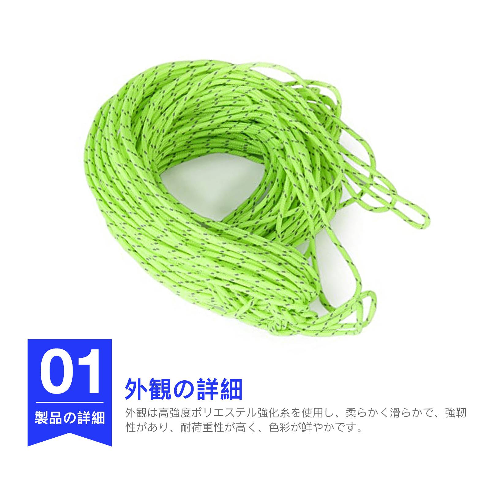 夜間反射ロープ アウトドアテントナイロンロープ 緊急救助ロープ 吊り下げロープ 警告用ロープ テント防風ロープ アウトドアタープ引きひも キャンプロープ ペグロープ 20m(蛍光グリーン)