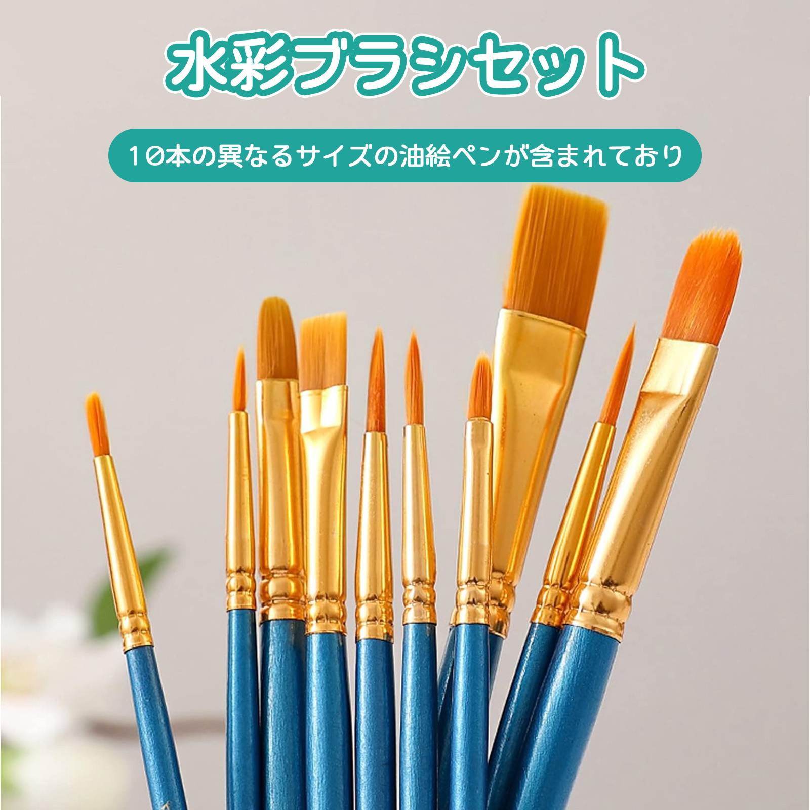 【10本入り】絵の具 筆 絵筆 水彩筆 平筆 画材 アクリル絵の具 筆 アクリル絵の具 セット ナイロン毛画筆セット 水粉筆 アクリル画筆 油絵筆 美術用品 子供 大人 初心者からプロまで使える 多用途 耐久性