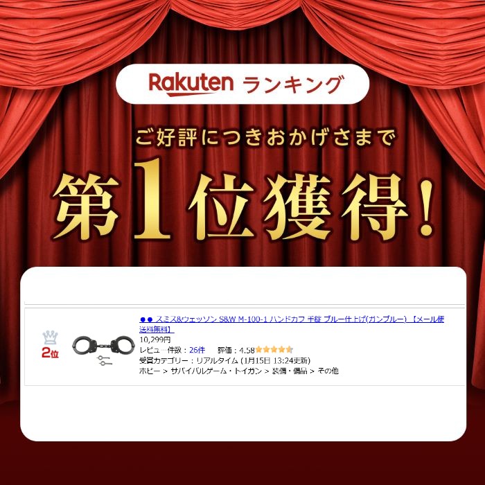 【楽天ランキング2位】スミス&ウェッソン S&W M-100-1 ハンドカフ 手錠 ブルー仕上げ(ガンブルー) 【メール便送料無料】 (サバゲー)