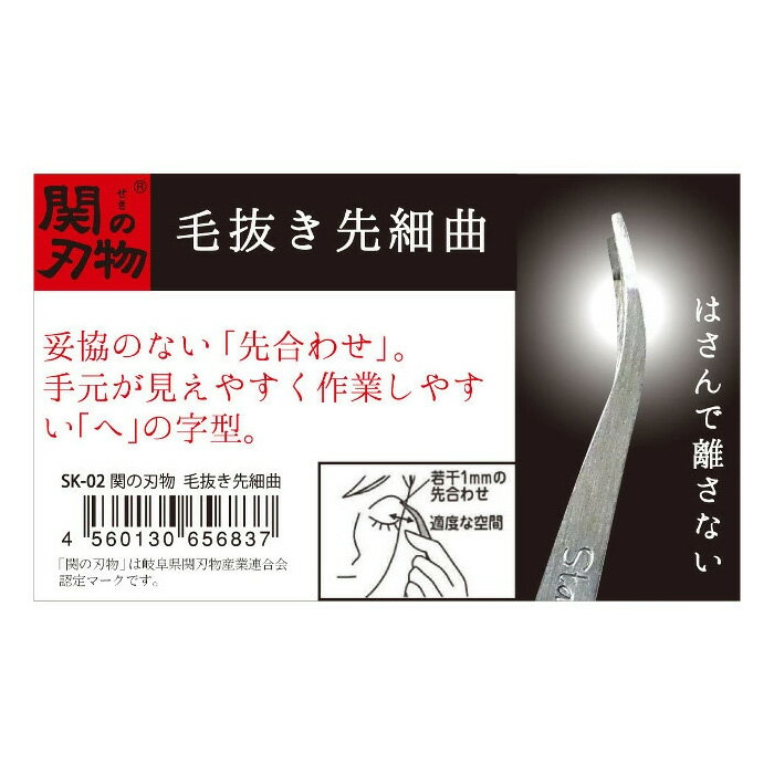 関の刃物 毛抜き先細曲 SK-02 / ステンレス 先合わせ への字 キャッチしやすい 岐阜県 日本製 メール便
