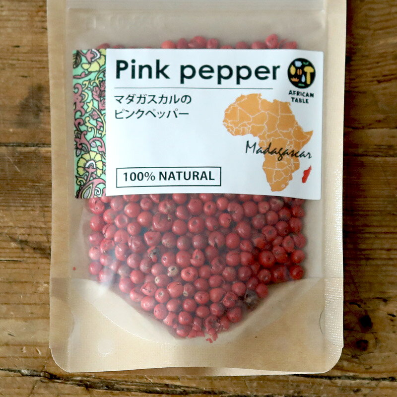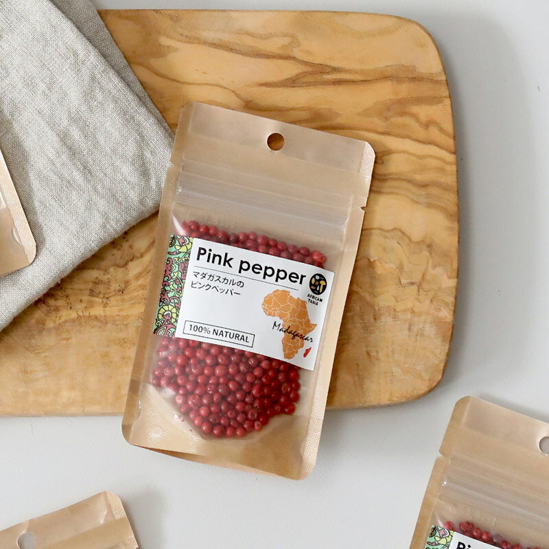 マダガスカル ピンクペッパー 15g オシャレでやさしい香りのペッパー マダガスカル東部のマナンザリーの小規模農家が栽培している赤胡椒。 フルーティーで華やかな風味が特徴です。 スパイスとしてはかなり繊細な香味ですが、 鮮やかな見た目と ほんのり甘い風味やパリっとした食感が各種料理のトッピングにぴったり。 噛むと甘い香りが広がります。 肉料理やパスタ、チーズにオリーブオイルと合わせたおつまみやチャイに。 フレンチドレッシングと合わせてサラダのアクセントにも最適。 商品詳細 フルーティーで華やかな風味が特徴のマダガスカル東部のマナンザリーの小規模農家が栽培している赤胡椒。 カルパッチョやサラダ、肉や魚のソテーなどあらゆる料理やデザートのトッピングに。噛むと甘い香りが広がります。 内容量15g 原材料名ピンクペッパー 原産国マダガスカル 保存方法直射日光・湿度の高い所を避けて保管 開封後は冷蔵庫に保管し、早めにご使用ください。 備考・本製品製造工場では、バナナを含む製品を製造しています。