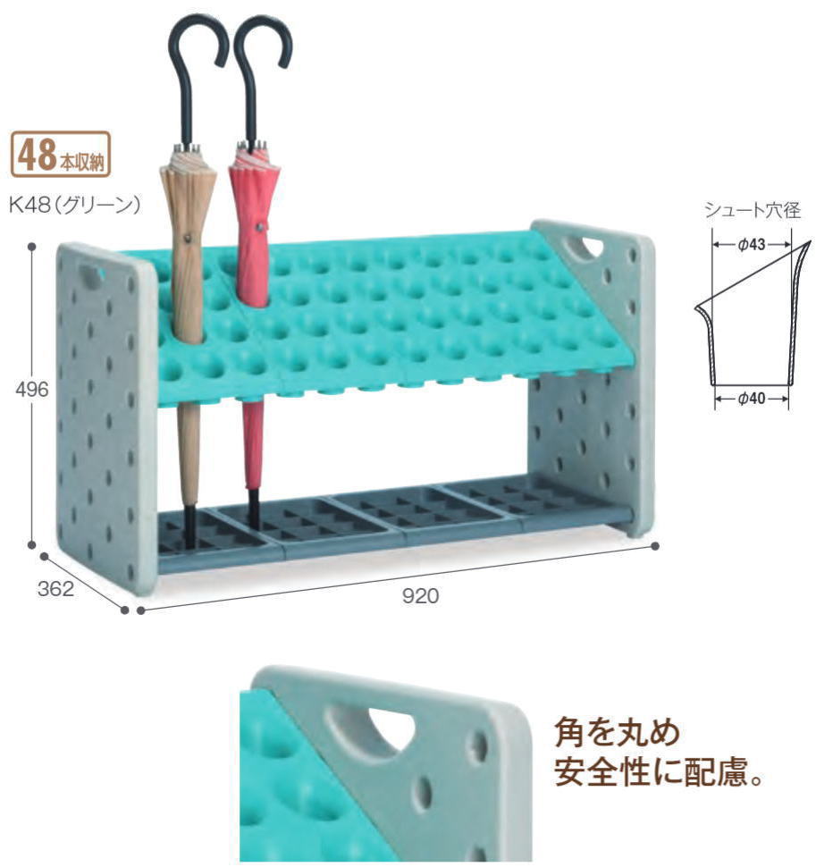 丸みをおびた優しいフォルムの安心傘立です。 筒状のシュートに傘を一本ずつ収納する構造で、傘同士が絡みません。 『軽量』軽くて持ち運びも楽々!握りやすい取手付です。 『清潔』受皿が外れ、溜まった雨水も簡単に捨てられます。 『安全』投入口が斜めで座れない構造になっています。 学校や、幼稚園、オフィス、レストラン、公共施設などに。 商品の詳細は商品仕様(下部)をご確認下さい。 【2025年6月掲載開始】