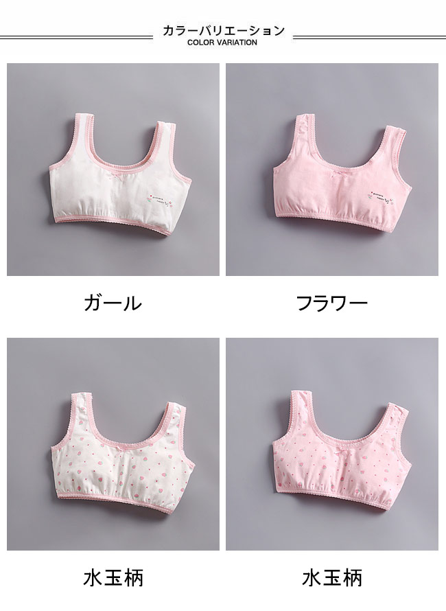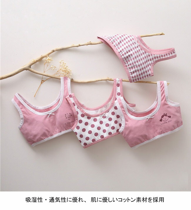 ジュニアブラ 女児 ブラ カップなし ブラジャー コットン タンクブラ 小学生 中学生 チェック柄 子供 ハーフトップ 水玉柄 女の子 夏 オールシーズン タンクトップ 綿混 キッズブラ 子供ブラ ドット柄 ホワイト ピンク