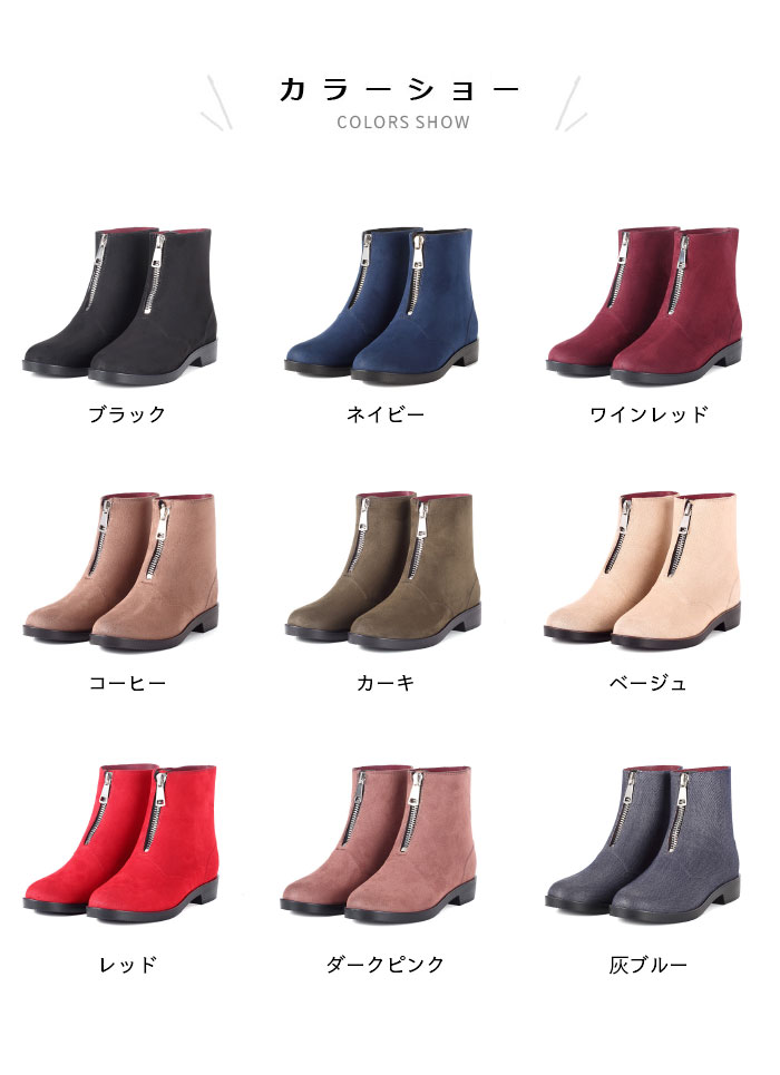 メーカー希望小売価格はメーカーカタログに基づいて掲載しています雨の日でもお洒落を逃さないレインブーツ 選べる豊富な9色展開となります コーデに合わせやすいお洒落なデザイン 履き脱ぎしやすい便利なジップアップ仕様 ●おすすめポイント 《1》お洒落ながらも防水対策できるショートブーツ 《2》凸凹の入った滑りにくいソールなので安心感アップ 《3》柔らかな裏地が付いて、履き心地楽チン ■カラー: ブラック ネイビー ワインレッド コーヒーカーキ ベージュ レッド ダークピンク 灰ブルー ■サイズ: 36(内寸23cm) 37(内寸23.5cm) 38(内寸24cm)39(内寸24.5cm) 40(内寸25cm)(筒丈:15cm ヒール:3cm) ■生産:中国製 ネコポス→全国一律240円宅配便→550円(北海道・沖縄県・九州地方は950円) ■3980円以上のお買い上げで送料無料 ※北海道・沖縄県・九州地方は別途地域料として400円を頂戴しております。 素材 PVC 洗濯表示 上記サイズ表はスタッフが採寸し、製品の実寸を掲載しております。製品ごとに公開サイズと多少の誤差が生じる場合がございますので、予め御了承くださいませ。 ※サイトに掲載されている商品は、お客様のモニター環境等により、実際の物と素材感・色が多少異なる場合がございます。予めご了承ください。 ※サイズは平置きでの実寸サイズを測っているため誤差がでる場合がある旨ご了承下さい。 ※大量生産による生産過程におきまして、若干の個体差(2cmから3cm)が生じる場合がございます。 ※当商品は海外輸入品の為、生産過程において多少のほつれ等が生じている場合がございますのであらかじめご了承くださいませ。 ※『送料無料』の表示に関しましては日本国内限定となります。海外発送は別途送料が必要となりますのでご了承くださいませ。 ※同じ商品でも生産ロットにより色、サイズや生地感が多少異なる場合がご ざいます。