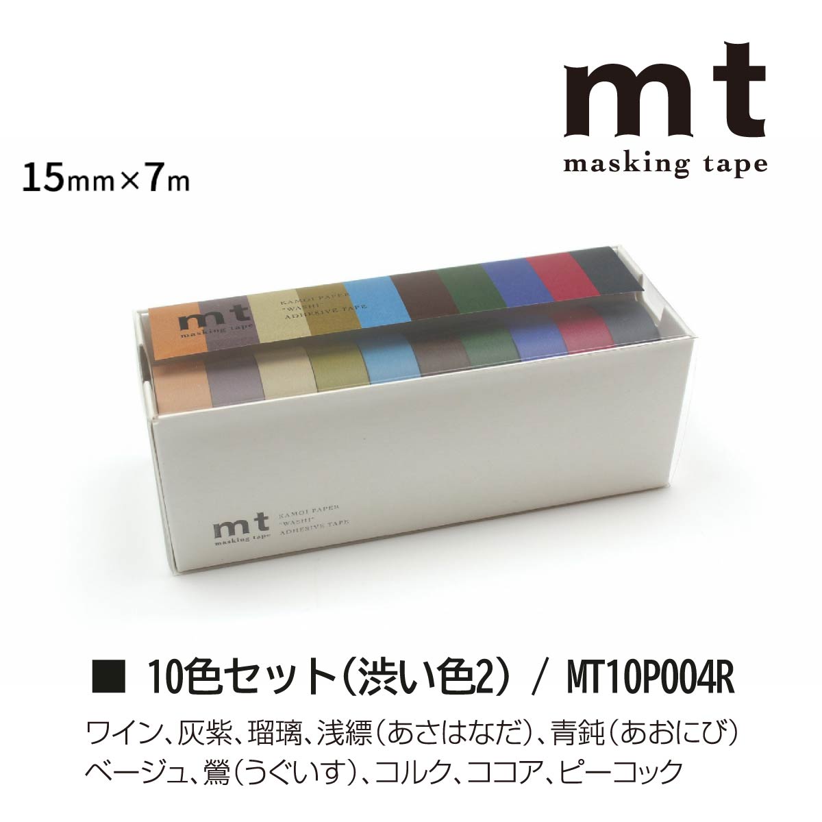 【ブラックフライデー限定!エントリーで全品ポイント10倍】カモ井加工紙 マスキングテープ 【mt10P】 10色セット 明るい色2(MT10P003R)/渋い色2(MT10P004R) 15mm×7m mt mt マステ
