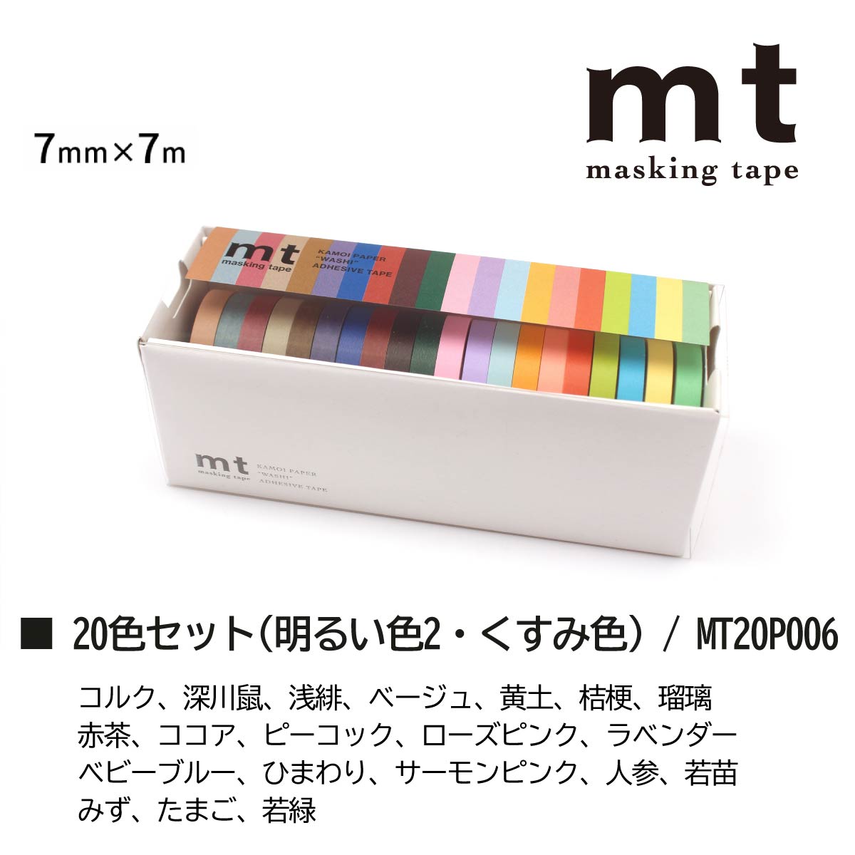【ブラックフライデー限定!エントリーで全品ポイント10倍】カモ井加工紙 マスキングテープ 【mt20P】 20色セット 【明るい色2・くすみ色(MT20P006)】 7mm×7m mt mt マステ