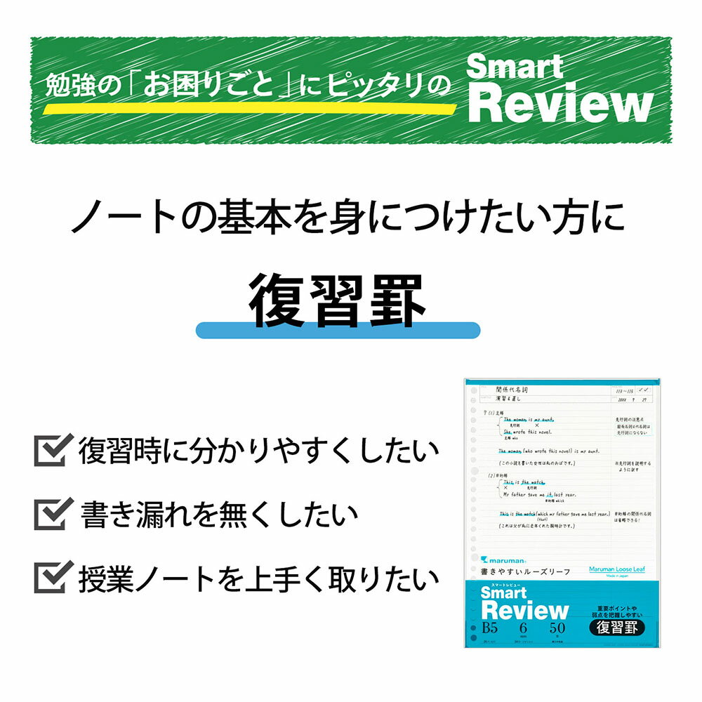 【公式】 スマートレビュー ルーズリーフ B5 6mm 復習罫 32行 50枚 L1243a マルマン [ゆうパケット1点まで] ※発送2点以上は宅配便