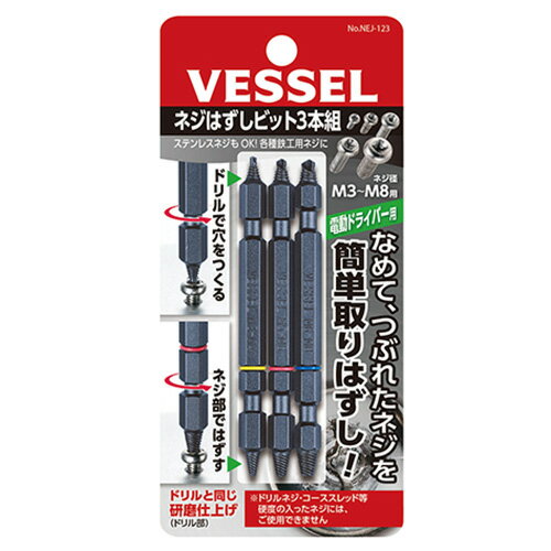 ネジはずしビット 3本組 NEJ-123 DIY 工具 道具 切削 切断 穴あけ ドリル 部品 その他ドリル ベッセル 34649