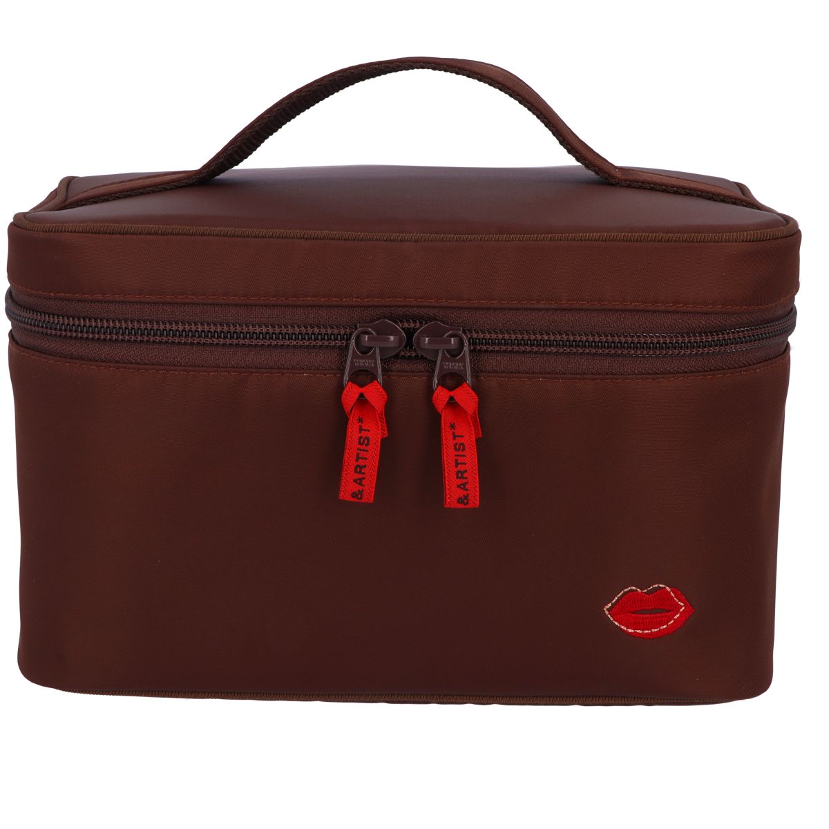 ビューティーコンサルタントあやんぬさんとのコラボレーション第2弾。テーマは“MY BEST COSME” かんたんなメイク直しから旅行用まで、シーンに合わせてコスメ収納できるモデルをセレクトしました。 ポーチのカラーは秋色リップをイメージしたブラウン系。裏地にはダスティピンクの唇をプリントした上品なアイボリー生地を採用。 ワンポイントの刺繍には“リップ1本で女性の表情は大きく変わる”というあやんぬさんの理念が込められています。 メイクブラシ、リップ、ファンデーション、約13cmの高さのボトルまで収まるスクエアフォルムのバニティ。 フタの裏にはビニール製のポケットを配置。透明なので中が見やすく、ファスナー付きで中のものがこぼれ落ちない仕様です。 ※製品の特性上 刺繍まわりにシワが生じますが品質に問題ございません。 ※予告無く仕様が変更になることがございます。 商品番号 4WP-PU207 材質 表:ナイロン(撥水加工) 裏:ナイロン サイズ 幅21.5cm×高さ14.5cm×奥行12.5cm 重量 270g カラー ブラウン 生産国 日本スタイリッシュなデザインと使いやすい機能性の両立 メイクブラシ、リップ、ファンデーション、約13cmの高さのボトルまで収まるスクエアフォルムのバニティ。 インナーは仕切りも付いたプロ仕様のデザインです。 テクニカルな充実の収納力 フルメイクに十分なボトルやパレットなどのメイク道具が収納可能。 ブラシ、美容液、基礎化粧品も約13cmの高さであれば立てたまま入れられます。 機能的なファスナー付きビニールポケット フタの裏にはビニール製のポケットを配置。透明なので中が見やすく、ファスナー付きで中のものがこぼれ落ちない仕様に。ファスナーはポケットの裏側にもあり、表と裏との両面からポケットに内にアクセス可能。ビニールポケットのファスナーが閉じた状態と開けた状態どちらからも取り出せるファスナーが付いています。 自在にカスタマイズできる仕切り 内部には、取り外し可能な仕切りがあります。 仕切りを取って大きなスペースを確保し、コンテナ(※別売)などをセットできます。 仕切りにはマスカラ、グロスなどが収納できるホルダーがついています。透明のクリアポケットには小物の収納に便利。中身が見やすく、汚れのサッとふき取れます。 機能的で充実したブラシホルダー フタの内側には5つのブラシホルダー。 ブラシだけでなく、携帯用電動歯ブラシやマスカラなど、スティック型のアイテムは全部こちらに収納可能。 ビニール製のポケット自体がブラシカバーの役割を果たすことでブラシの毛先もきちんと保護しています。ポーチ内のへの粉飛び防止になり、粉やブラシの毛が簡単にふき取れるのも便利。 持ち運びにも便利なサイズ感 プロ並みにたくさんのコスメを美しく収納出来ます。 持ち運びに便利なハンドルは、にぎりやすさと耐久性を兼ね備えて旅行にも最適。 自宅でも旅行先でも充実したメイクの時間を実現します。