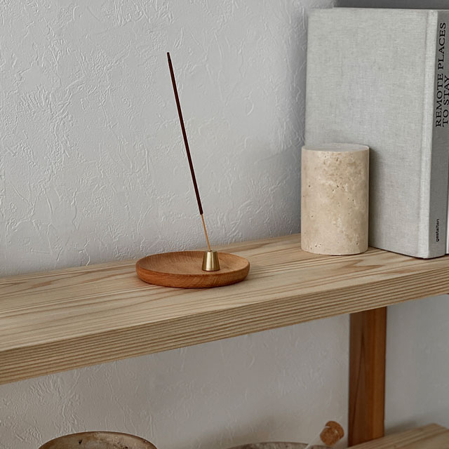 真鍮 ウッド ラウンド インセンスホルダー お香立て【ART OF BLACK】