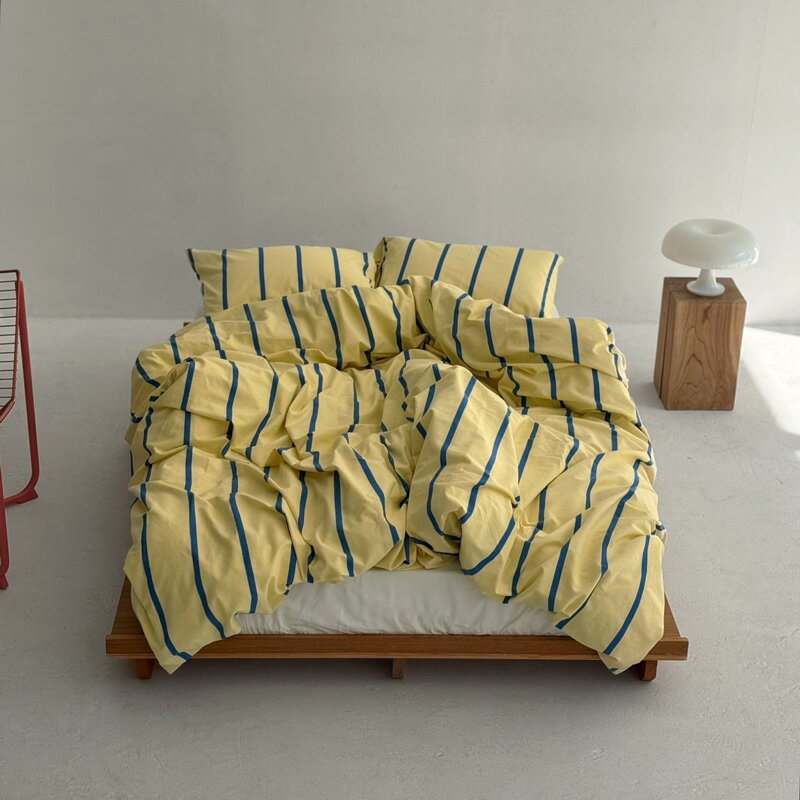 yellow×blue ペンシルストライプ 布団カバーセット【ART OF BLACK】