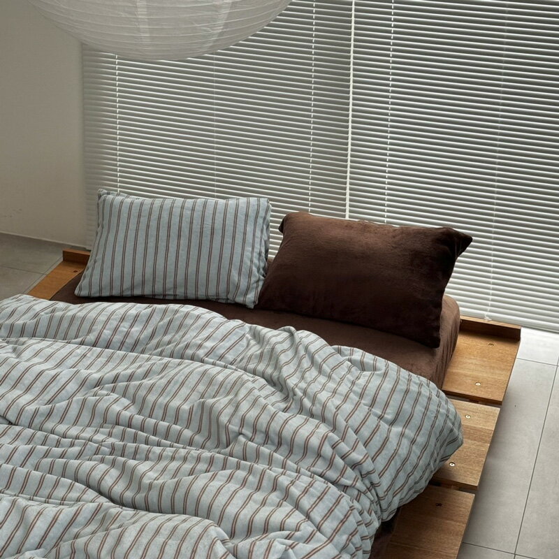 予約販売1月中旬頃発送予定 blue×brown あたたか ファイバー厚手 起毛 ストライプ 布団カバーセット【ART OF BLACK】