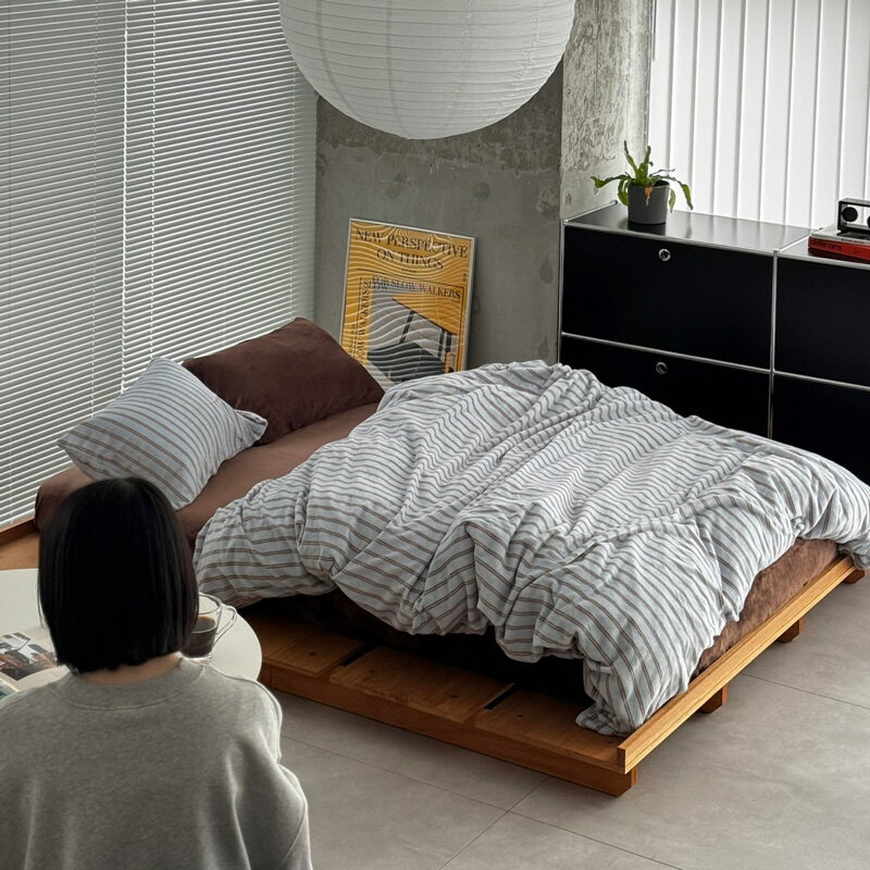 ※予約販売の商品と他の商品を一緒にご注文いただいた場合、予約販売の商品が入荷次第同梱して発送致します。 他の商品を先に発送希望の場合はお手数ですが別々にご注文ください。 ・こちらは掛け布団カバー、ベッドシーツ、枕カバーのセット販売です。 ・肌触りが滑らかな柔らかい生地で、包み込まれるような感覚であたたかく過ごせます。 ※選択肢にあるサイズ表記は、シーツのサイズで設定しています。掛けカバー・シーツのサイズ詳細は、購入前に必ずご確認ください。 ※仕様上、サイズに多少誤差が出る場合がございます。ご了承ください。 【セット内容】 シングル・セミダブル ・3点セット ・掛け布団カバー1枚(ストライプ) ・フラットシーツ1枚(ブラウン無地)※ゴムのないフラットタイプ。 ・枕カバー1枚(ストライプ) ダブル ・4点セット ・掛け布団カバー1枚(ストライプ) ・ボックスシーツ1枚(ブラウン無地)※ゴム付きのシーツ。 ・枕カバー2枚(ストライプ×1枚・ブラウン無地×1枚) クイーン・キング ・4点セット ・掛け布団カバー1枚(ストライプ) ・ボックスシーツ1枚(ブラウン無地)※ゴム付きのシーツ。 ・枕カバー2枚(ストライプ×1枚・ブラウン無地×1枚) ■素材 ポリエステル100% ■サイズ シングル・セミダブル[ベッド幅120cmまで] 掛け布団カバー:約150cm×約200cm フラットシーツ:約180cm×約230cm ダブル[ベッド幅150cmまで] 掛け布団カバー:約200cm×約230cm ボックスシーツ:約150cm×約200cm×マチ約20cm クイーン・キング[ベッド幅180cmまで] 掛け布団カバー:約200cm×約230cm ボックスシーツ:約180cm×約200cm×マチ約20cm ■サイズ 枕カバー:約48cm×約74cm ※他のアイテム含め、荷物のサイズが変わる数量をお買い上げの場合に限り、送料変更がありますので別途ご連絡致します。