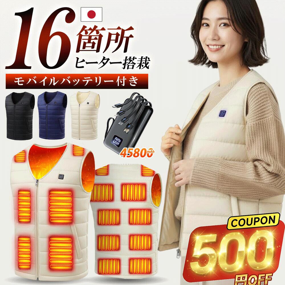 【激アツ価格・クーポンで3,690円】 電熱ベスト ヒーターベスト 日本製繊維ヒーター 発熱ベスト 前後16箇所発熱 3段温度調整 速暖 電熱ジャケット 加熱ベスト 電気ベスト 電熱ウェア ベスト レディース メンズ 男女兼用 洗える 防寒インナー 送料無料