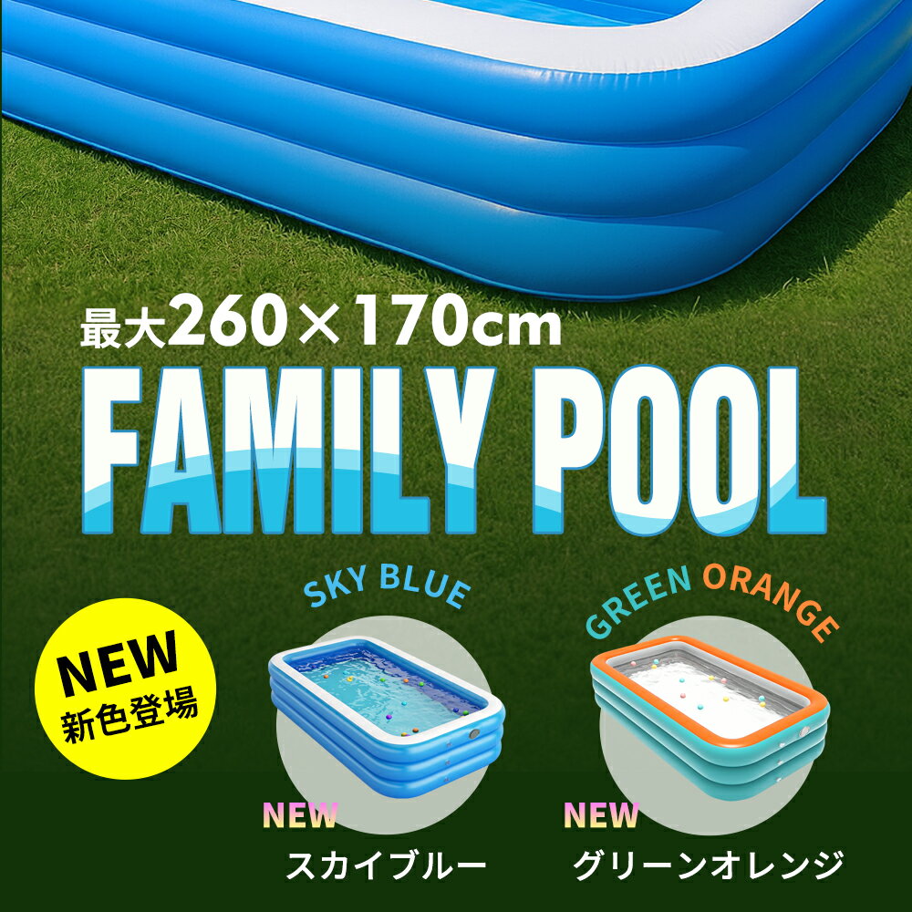【クーポンで最安2,080~円】プール 150〜260cm 折りたたみ 1〜5人用 大型 ビニールプール 水遊び 修理パッチ付 空気入れ付 大型プール ジャンボプール ガーデンプール ファミリープール 子供用 家庭用 屋外用 長方形 キッズ 大人 送料無料 ブルー・グリーン
