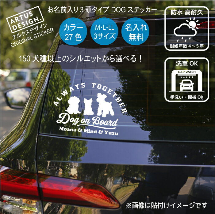 犬 ステッカー 車 多頭 3頭 3匹 名入れ 名前 かわいい オーダーメイド 玄関 おしゃれ シール シンプル 人気 多頭飼い シルエット わんこ いぬ 愛犬 表札 ネーム ドッグインカー オリジナル DOG オーダー かっこいい リア 三匹 三頭 3犬種 パピヨン チワワ