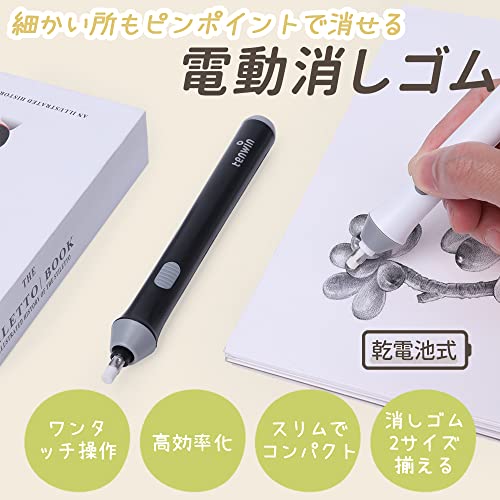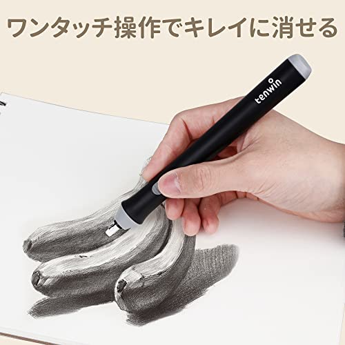 【送料無料】Tenwin電動消しゴム 電動字消器 パワフル よく消える 静音 筆形 取り換え用 消しゴム22本付き 学生用 文房具 オフィス用品 図面 楽譜 建築企画 絵画 電池式 ブラック
