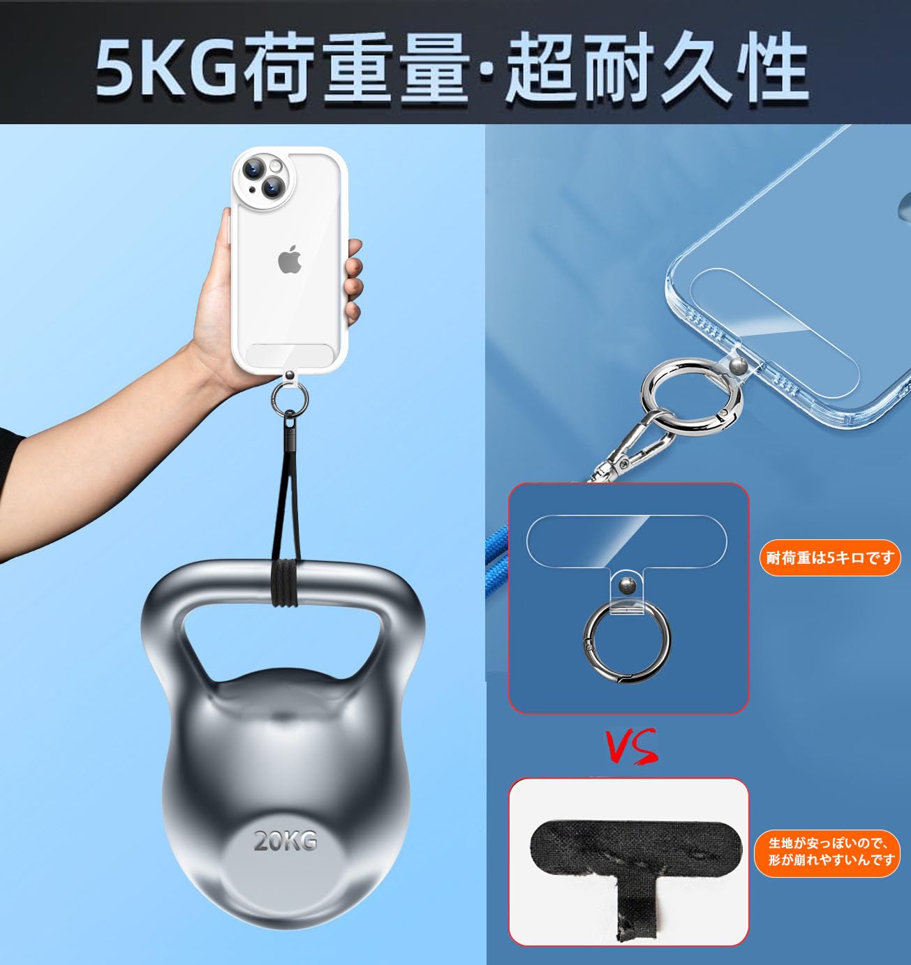 商品情報商品の説明ストラップホルダー スマホ ストラップホール 透明パッチ ネックストラップ 外付け 落下防止 首掛け 斜めがけ 肩掛け 首かけ ショルダー ネックストラップ 肩かけ 携帯ストラップ iphone android スマホアクセサリ薄型 一体成形 着脱簡単断裂を防ぐ 耐久性 全機種対応主な仕様 【粘着シールなしストラップホルダー】耐荷重:約5 kg。優れたTPU材質を採用して、柔らかくてスマホに傷つけずに、どんなに曲がっても変形にくい。丈夫なので、長期間繰り返し使用できます。接着剤がなく、タグパッチを取り外した後、接着剤が残る心配がありません。br【丈夫性・耐久性を強化】新しい材料を採用して、丈夫でより2倍以上の耐久性を強化されます,高温プレスに特殊素材で作られています。 スマホストラップホルダーはスマホの落下防止に欠かせないアイテムです。通常の金属製バックルよりも 200% 耐久性が高い。従来製品の連結のタグパッチは粗雑な金属製の丸形を採用、丈夫さが弱い、破損もやすく、衝撃の場合は落下の可能があるかもしれない。重量テストも合格し、丈夫さが本当に抜群、衝撃でも落下の問題も全然心配しなく、ごスマホをしっかりと守ります。剤がなく、タグパッチを取り外した後、接着剤が残る心配がありません。br【両手解放&紛失防止】スマホストラップホルダーはスマホの落下防止に欠かせないアイテムです。様々なスマホストラップと合わせて使えば、両手を解放できます落下防止、盗難防止、紛失防止にも役立ちます。旅行、散歩、通勤、外出、自撮り、電車内の時など日常生活でスマホを落とす恐れなく片手で操作が可能です。br【全機種対応】スマホホルダー付きので、機種に関わらず、挟んでも、貼ってもiPhone (アイホン)、Google、Sony、各種スマホに対応できます。ストラップホルダーがあるかどうかにかかわらず携帯ストラップと合わせてお使い、全機種対応できます。br【品質保証サービス】商品の不具合や品質にご満足いただけなかった時は、当店負担で返品・交換など誠意をもって対応いたします!24時間以内迅速に対応させていただきます。ご連絡の方法:アカウントサービス内の「アカウントサービス」→「注文履歴」→「販売元」→「質問する」から、ご遠慮なくお問合せ下さいますようお願い申し上げます。お客様にご満足いただけるよう努めてまいります。
