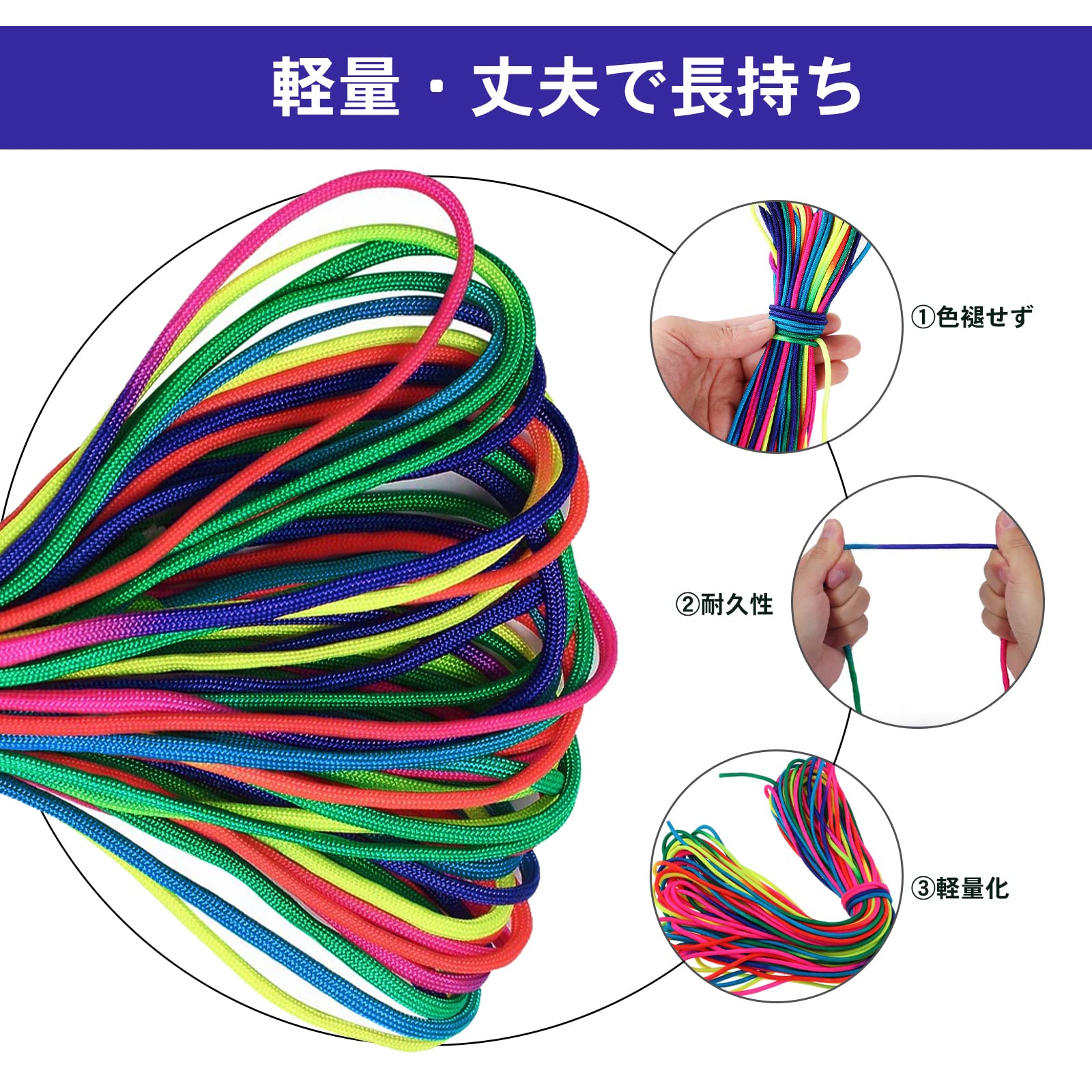 【送料無料】パラコード 2mm 約29-31m カラフル テント用ロープ パラシュートコード カラフルロープ コードパラシュート ペット首輪 編む用 手芸用 キャンプ アウトドア用 1本セット Mesanda (カラフルー)