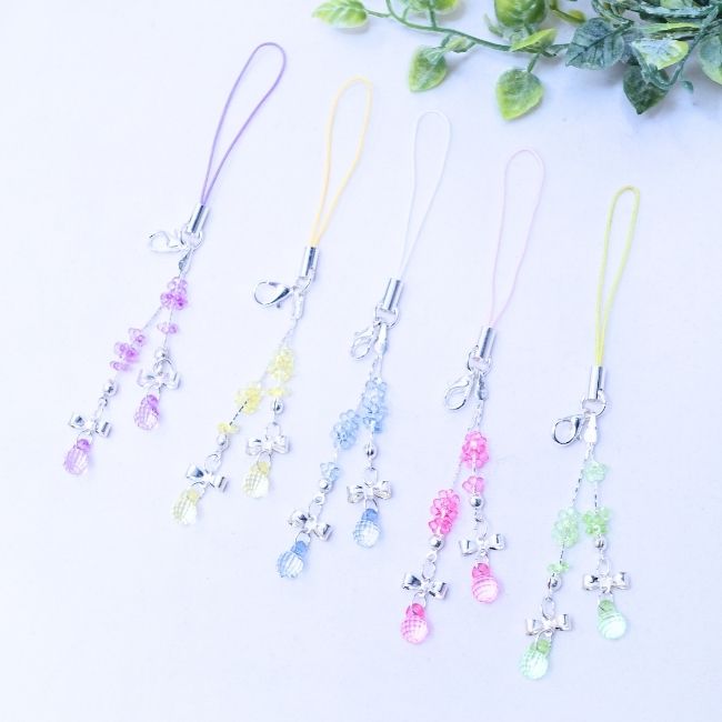 【お値下げ】【10本】リボン チャーム付き 根付紐 携帯ストラップパーツ 10本 カラフル 携帯電話 スマートフォン スマホ ストラップ 資材 アクセサリーパーツ 手作り 材料 ハンドメイド 卸 手芸 キーホルダー キッズ ポイント利用 ポイント消化