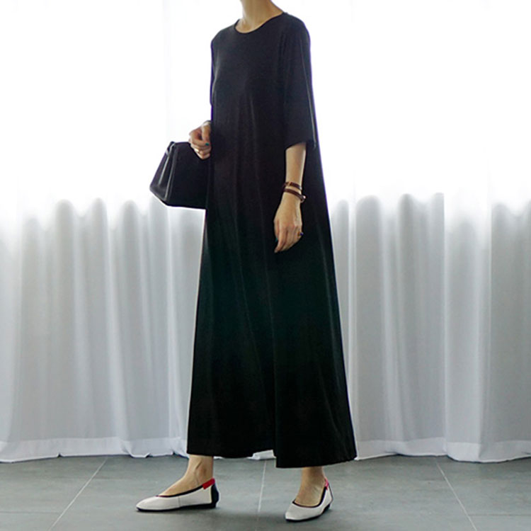 フレアマキシワンピース マキシワンピース ロングワンピース フレア tシャツワンピース ロング丈 マキシ丈 半袖 5分袖 リラックス ゆったり シンプル 無地 夏 体型カバー 送料無料