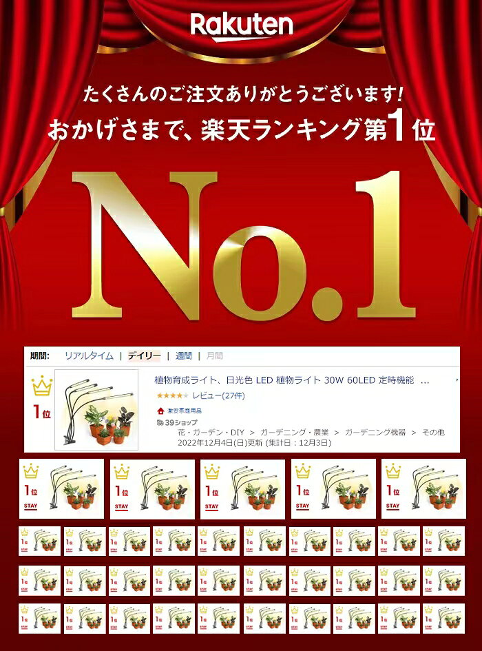 商品紹介 ●🌱【フルスペクトル】🌱照射角度120度(光透過率の高いPCケース使用)超演色評価数のフルスペクトルLEDを追加し、見やすくしました。ブルーライトハザードはほとんどなく、葉や花の色が美しく見えます ●🌱【360°調整可能な4ヘッド設計】🌱この植物ランプは調整してどこにでも配置することが容易である360度柔軟な首とクリップを備えています、ご利用目的や用途に合わせて最適な方法でご使用いただけます。グースネックは丈夫なステンレス製で、柔軟性があり、固定位置を維持します ●🌱【USB接続・安定性UP】🌱USB接続の設計、オフィスや家庭用により多く便利です。ランプヘッド回路を強化・改良し、明るさをより安定させています。植物LEDライトの寿命は役50000時間以上に使用でき、ランプを交換必要がありません ●🌱【タイマー機能】🌱3時間、6時間または12時間の3つの時間設定モードは、異なる植物のニーズに応じてあります。3時間に設定した場合で、植物育成LEDライトが自動的に3時間後に消えます。24時間後に同じ時間に自分で点灯します。 ●🌱【24時間サイクル】例えば朝8時にオンしたら11時に自動消灯して、翌日の朝8時に自動的にオンになって、11時に自動消灯します。 🌱ご注意:電力をずっと供給する必要があります。そうしないと、翌日にタイミング機能を再設定する必要があります。 ●🌱【省エネ&一年保証】🌱植物育成ライト定格消費電力(13W),LED使用で電気代節約、経済的LEDなので、発熱量が少ないし、省エネルギ 低コストで植物を育てます。また、弊社の商品お買い上げ頂きの商品について、保証や質問がございましたら、ぜひ遠慮なくこちらとご連絡ください。きちんと保証サービスをご対応致します 安心保障 本製品はご購入日から12ヶ月間の保証が付いています。 万が一、初期不良や故障などが発生した場合は、どうぞお気軽にお問い合わせください。 弊社が速やかに対応させていただきます。 お問い合わせメールアドレス:asahigoudougayisya_2@shop.rakuten.co.jp. 注意点&お取扱い ▼モニターの発色によって、実際の色と見え方が異なる場合がございます。 メーカー希望小売価格はメーカーカタログに基づいて掲載しています