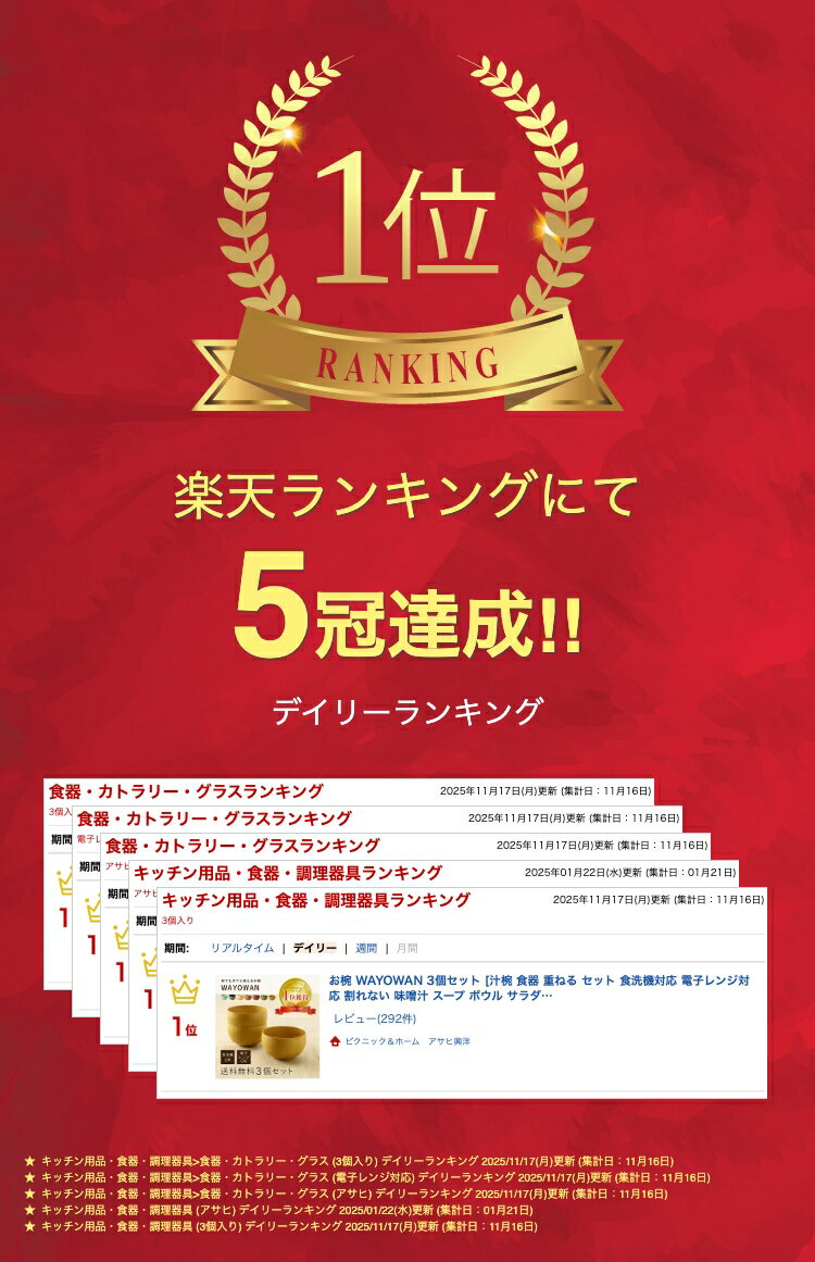 お椀 WAYOWAN 3個セット [汁椀 食器 重ねる セット 食洗機対応 電子レンジ対応 割れない 味噌汁 スープ ボウル サラダ モダン 洋風 和風 北欧 おしゃれ 水切り かわいい ギフト 贈り物 日本製 アサヒ興洋 樹脂製]