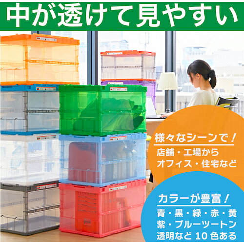 TRUSCO オリコン 薄型折りたたみコンテナ スケルコン 50L ロックフタ付 透明 透明 TSK-C50B TM 1個 ▼344-9467