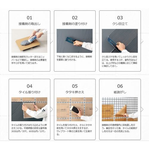 化学製品 接着剤・補修剤メーカー名セメダイン(株)プラス名称 セメダイン商品名セメダイン タイルエースF (ホワイト) MP2kg RE−217型式RE217メーカー希望小売価格【税抜】2870円(税抜)オレンジブック年 ページ発注コード813-5087JANコード4901761163347特長●外装・浴室など厳しい条件下でも使用可能な弾性接着剤です。●低粘度・高弾性で、耐水性があります。●内外装・大型タイル接着用・速硬化品です。●大型タイルの張り付けに適した速硬化タイプの接着剤です。●湿式及び乾式下地の内外装のタイル張りに使用できる接着剤です。●内外装用として多くの実績を持つ、耐久性に優れた弾性接着剤です。●一液タイプであるため、作業が容易です。●厚生労働省の指針値策定14物質を使用しておりません。●フィルムパックのため取り出しやすく、廃棄物が少なくなります。用途●内外装タイル用(大型タイル)。●内外装壁タイル接着用。仕様●色:ホワイト●容量(kg):2●粘度(mPa・s):(Pa・s/23℃)525●JIS規格:A5557、A5548●張り合せ可能時間:40分以内(23℃)、15分以内(35℃)●標準塗布量:ビード塗布φ10mm 約1.6本/m2●手絞りタイプ材質●主成分:変成シリコーン樹脂セット内容/付属品注意原産国日本重量2KG納期目安当日〜2営業日以内に発送 ※欠品時別途連絡