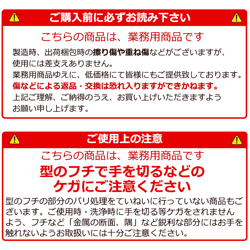 アルミ製で熱伝導がよく、熱ムラがなくきれいに仕上がります。 つなぎ目のないシフォンケーキ型10cmの特長 ■1枚絞り(溶接でなく、1枚の板を元型に合わせて押し曲げて作る方法)のため、煙突部分につなぎ目がなく離型もお手入れも簡単! ■煙突部分の根元を鋭角に折り曲げず、見た目にわからない程度になめらかに絞るため、その部分だけ板厚が薄くなって弱くなることがありません。 ■裏面がフチ折りしてあり、洗浄時などに怪我をする心配がなく、本体の強度もUP! 材質 : アルミにアルマイト加工 サイズ : 内寸約100(90)XH60(煙突含めて96)mm 生産国 : 日本 取扱方法・その他注意事項 ・ 空焼きの必要はありません。 ・ ご使用後は、洗ってよく乾燥させて保管してください。 こびりついた汚れは、しばらく水につけてふやかし、スポンジなどでこすってください。 ・ 業務用品のため、ビニール包装となりますので多少のすり傷等がある場合がございます。 ■□スタッフコメント□■ シフォンケーキ型といえばプロの型も使うアルミ製がおすすめです。シフォンは生地が型についてグッと膨らんでいきますので型に油脂は塗らずそのまま使用します。また、逆さにして冷ます時にも型からすべり落ちてしまうこともありません。 こちらもどうぞ\10%OFFクーポン/ シフォンケーキ型 12,695円\10%OFFクーポン/トール シフォンケーキ2,728円\10%OFFクーポン/ シフォンケーキ型 25,357円ショップトップ > カテゴリトップ > 洋菓子の型 > シフォンケーキ型ショップトップ > カテゴリトップ > 洋菓子の型 > シフォンケーキ型2025/10/24 更新 ふんわりシフォンを焼くこと、お手入れも楽なこと、永くお使いいただけること、安全なこと きっとご満足いただける最高の品質をお届けいたします。