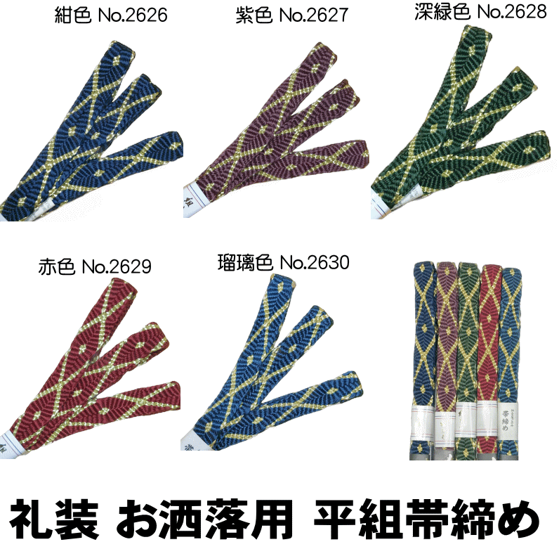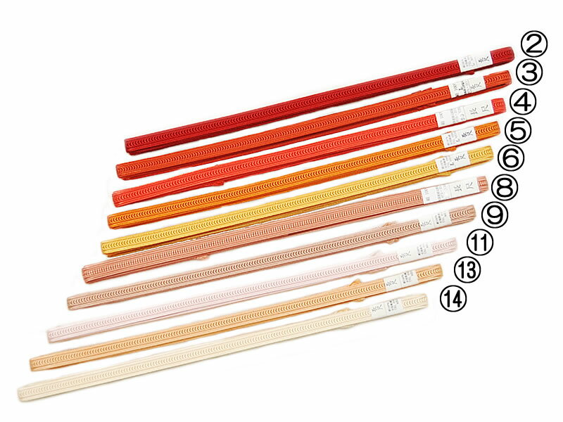三分紐と呼ばれる、帯留を付ける際に帯締として使用する3分巾の組紐です。 身体の大きな方用に、通常の長さより約30cm長く組み上げられています。 単色で柄の無いシンプルな無地タイプは、帯留のムードや帯の色目に合わせてお好みで選んで頂くことが出来ます。 あわせる帯留めを何にしようか迷ってしまいますね。 全体のアクセントとして取り入れるのも◎ 同色でスッキリまとめられるのも◎ 通常より長く作られた帯締め、主役の帯留の持ち味を引き出し脇役をしっかり務めてくれます。 ※可能な限り実物と同じ色になるよう写真を調整しておりますが、パソコンの環境やモニターにより色味や質感が若干異なる事があります。ご了承ください。 ■素材 : 絹100% ■色目 : 2.真紅色 3.紅緋色 4.猩々緋色 5.橙色 6.梔子色 8.オールドローズ色 9.宍色 11.ベビーピンク色 13.淡香色 14.薄卵色 ■サイズ : 長さ/約1m50cm 巾/約0.9mm 単価が低い商品なのに、送料に割高感を感じる方は・・・・ 一定の条件を事前にご承諾いただければ クリックポストでの配送に変更が出来ます。 詳しくはこちらをご参照くださいふくよかな方にとっては、もう少しだけ長くなっていれば、使い易いのに・・・と思われる帯締めや三分紐でご苦労されている方もいらっしゃるかと思います。そんな方の為にご用意したのが、こちらのページでご紹介の長尺の三分紐です。 通常メーカーサイドでは三分紐を生産する際には、1本の長い紐として組み上げ、それを決められた長さにカットし、端を始末して商品として出荷されます。その際に、予め頼んでおくと通常よりも長くカットしたものを作ってくれます。 そうすることによって、長尺の三分紐を確保する訳です。 並尺と同じように、メーカーでは色目を揃えている訳ですが、並尺に比べ確保する本数は圧倒的に少なく、長尺が売切れますと、次の発注をメーカーにしても、並尺の在庫が無くならないと新規の生産に掛かれず、長尺の入荷の見込みが立たない場合もございます。 ですから、長尺のご入用な方で、お気に召す色目があれば、即getです。