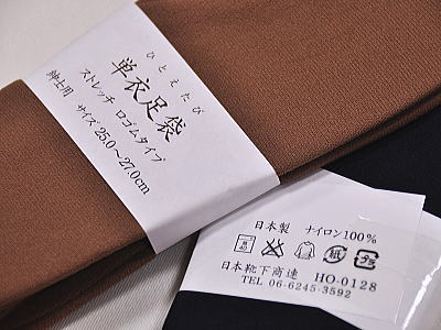 ストレッチ素材でコハゼも無く、靴下のようにスッポリ履ける足袋です。サイズは女性用サイズと男性用サイズの2口。ストレッチ素材で寸法の範囲内なら融通が利きます。 色目の黄枯茶・ベージュ・鼠色の3色は男女共通色ですが、ボルドーは女性専用、ネイビーブルーは男性の専用色となります。 ■素材 : ナイロン100% ■色目 : ボルドー・ネイビーブルー・ 黄枯茶・ベージュ・鼠色 ■サイズ : 婦人用: 22.0cm 〜 25.0cm 紳士用: 25.0cm 〜 27.0cm ■産地 : 日本製 低単価商品なのに、送料に割高感を感じる方は・・ 一定の条件を事前にご承諾いただければ クリックポストでの配送に変更が出来ます。 詳しくはこちらをご参照ください 婦人用の配色:右からボルドー・ベージュ・黄枯茶・鼠色紳士用の配色:右からネイピープルー・黄枯茶・ベージュ・鼠色