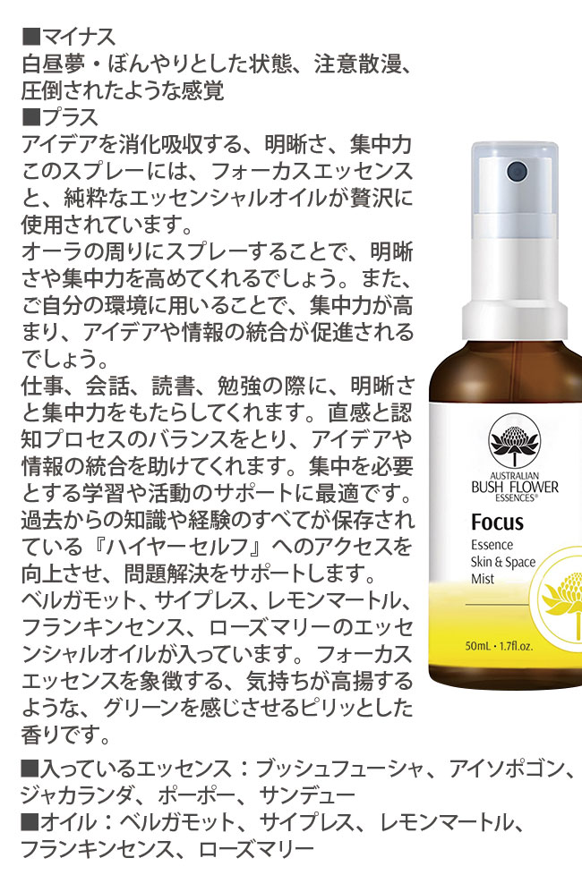 フォーカススプレー Focus Spray 集中力 オーストラリアンブッシュ フラワーエッセンス スプレー