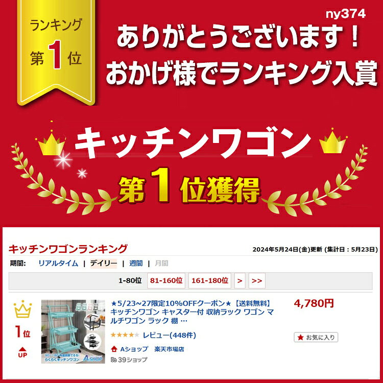 ◆90度から180度角度調整可能! ◆メッシュカゴは自由に取り外し可能! ◆キッチン、お部屋、浴室やお庭様々な場所で使用可能! ◆キャスター付きで移動も楽々! ◆使用する場所の雰囲気に合わせて7色から選択できる! ◆最大約60kgまで! 【商品内容】:キッチンワゴン 【カラー】:ブラック/ホワイト/ミント/ピンク/ブルー/ネイビー/イエロー/グレー/ベージュ/ブルーグレー/ミントアッシュ/アッシュホワイト 【サイズ】:(約)42.8cm×33.5cm×89.2cm 【メッシュカゴサイズ】:(約)34cm×25cm×5.5cm 【重量】:(約)5,5kg 【耐荷重】:(約)60kg(各メッシュカゴ約20kg) ○使用上の注意事項○ ※現在スパナは付属しておりません。 ※改造/本来の目的以外/強い衝撃などはお控え下さい。 ※耐荷重以上の重さの物を載せないでください。 ※仕様は予告なく変更する場合があります。 ※ディスプレイ画面等の環境上、写真と実際の商品の色とは多少違う場合がございます。 ※海外輸入商品により、汚れ/ゆがみ/サビ/ダメージ等がついている場合がございます。 ※フレームを移動させる際カゴがひっかかる場合は、少し浮かせてご使用下さい。 ○以上、ご同意の上ご購入ください!○ メーカー希望小売価格はメーカーサイトに基づいて掲載しています\\24H限定セール// ★5/7(水)10:00→5/8(木)9:59迄!★ 名称・内容・商品内容:キッチンワゴン 種類・サイズ【カラー】:ブラック/ホワイト/ミント/ピンク/ブルー/ネイビー/イエロー/グレー/ベージュ/ブルーグレー/ミントアッシュ/アッシュホワイト 【サイズ】:(約)42.8cm×33.5cm×89.2cm 【メッシュカゴサイズ】:(約)34cm×25cm×5.5cm ※現在スパナは付属しておりません。 重量・耐久【重量】:(約)5.5kg 【耐荷重】:(約)60kg(各メッシュカゴ約20kg) 注意・説明※改造/本来の目的以外/強い衝撃などはお控え下さい。 ※現在スパナは付属しておりません。 ※耐荷重以上の重さの物を載せないでください。 ※仕様は予告なく変更する場合があります。 ※ディスプレイ画面等の環境上、写真と実際の商品の色とは多少違う場合がございます。 ※海外輸入商品により、角度を変える際に固い場合や/汚れ/ゆがみ/サビ/ダメージ等がついている場合がございます。 ※フレームを移動させる際カゴがひっかかる場合は、少し浮かせてご使用下さい。 ○以上、ご同意の上ご購入ください!○ キッチンで役立つアイテム★☆一覧はこちらから☆★ ¥1,000- ¥2,380- ¥1,780- ¥1,680- ¥21,800- ¥3,780-
