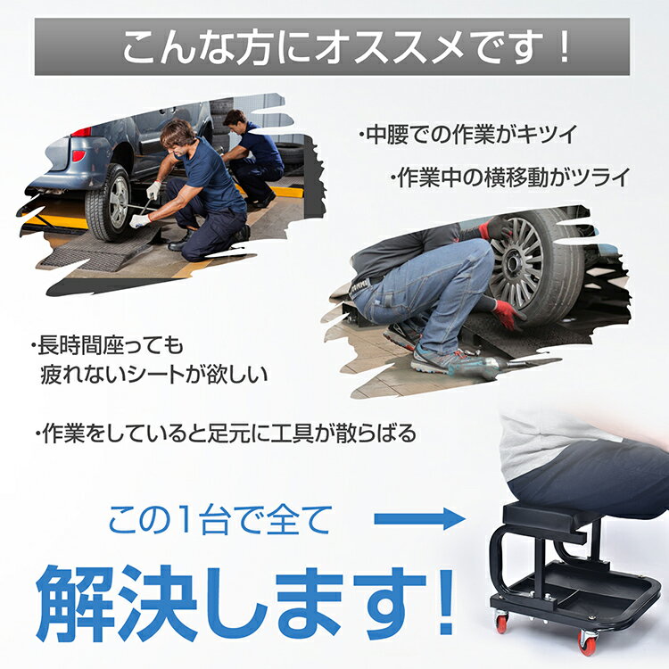 【1/1〜全品クーポン対象】【送料無料】 ローラーシート 作業用椅子 ガレージ 低所作業 工具入れ 収納トレイ ワーキングチェア メカニックシート キャスター付き 工場 ロースツール 父の日 ギフト プレゼント wk004