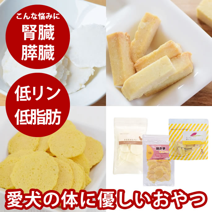 ※1 常温品と冷凍品混在時は11000円以上で送料無料 ※2 沖縄・北海道は11000円以上で通常送料無料、常温混在時は22000円以上で送料無料となります。 ※3 ただし在庫有りの商品に限る。土曜日は12時までとなります。 ※4 定休日:日曜日・第1第3土曜日・祝日となります。 ■お支払方法について ■購入後も安心の返品・交換について ■送料やお届け目安について ■会社概要 犬用クッキー 低リン栄養たっぷりクッキー 製品情報 低リンで腎臓に優しいクッキー。栄養も豊富で食いつき抜群。長方形の長い部分が約4cm程の大きさ。小型犬にも安心して与えることができます。 内容量:60g 原材料:全粒粉、米粉、こめ油、おからパウダー、オリゴ糖、全卵、甘酒、ヤギミルク、ハトムギ粉 保障分析値:たんぱく質10.9%、脂質22.7%、炭水化物60.3%、食塩相当量0.1%、ナトリウム0.044%、水分4.8%、灰分1.3%、リン0.208%、カルシウム0.109%、カリウム0.405% カロリー:489kcal/100g 原産国:日本 保存方法 直射日光、高温多湿を避けて冷蔵庫等冷暗所で保管してください。無添加の商品ですので、開封後はお早めにお召し上がりください。 注意 おやつの与えすぎは肥満の原因になります。与えすぎにご注意下さい。 おやつはフードのかわりになりません、副食としてお使いください。 防腐剤・着色料不使用の商品ですので開封後はお早めにご使用下さい。 【低リン栄養たっぷりクッキー】は、砂糖や防腐剤・着色料を一切使用していない素材の味だけを楽しめる素朴なクッキーです! 手で割れるので普段のコミュニケーションや、 ついつい与える量が多くなるトレーニング時のご褒美にもピッタリです♪ 。 低リン 低ナトリウム 低カリウム 高カロリー 全粒粉 全卵 太らせたい 腎臓病 優しい 商品の特長 与え方 商品スペック 低リンおやつ 体重が増えなくて悩んでいる愛犬や腎臓の問題で食欲が落ちている愛犬に! 低リン、低ナトリウム 食べなくて悩んでいる愛犬に 全卵、甘酒、ヤギミルク入りで食いつきもよく 少し、噛み応えのあるクッキーなので愛犬も大喜び 素材へのこだわり 砂糖や防腐剤・着色料を一切使用していない素材の味だけを楽しめる素朴なクッキー。 本品は天然の原料を使用しています。色・形・硬さなどにバラツキがありますが、品質には問題ありません。 与え方 栄養たっぷりの健康クッキー 全卵、甘酒、ヤギミルク入りで食いつきもよく 少し、噛み応えのあるクッキーなので愛犬も大喜び 商品スペック カロリー489kcal/100gの栄養たっぷりクッキー 低リン栄養たっぷりクッキー サイズ 60g 原材料 全粒粉、米粉、こめ油、おからパウダー、オリゴ糖、全卵、甘酒、ヤギミルク、ハトムギ粉ス 保証分析値 たんぱく質10.9%、脂質22.7%、炭水化物60.3%、食塩相当量0.1%、ナトリウム0.044%、水分4.8%、灰分1.3%、リン0.208%、カルシウム0.109%、カリウム0.405% カロリー 489kcal /100g 原産国 日本 賞味期限 製造より6か月 大きさ 長方形・・大きさ:約4cm×2.3cm程度 硬さと大きさレポート 犬用クッキー 低リン栄養たっぷりクッキー 目安の大きさ 長方形の長い部分が約4cm程の大きさ。小型犬にも安心して与えることができます。 硬さ目安 ★★☆☆☆ 与え方 少し固め、手で割ったり、そのままおやつとして オリジナルクッキーシリーズ オリジナルクッキー オリジナルクッキー腎ケアプラス オリジナルクッキー膵ケアプラス