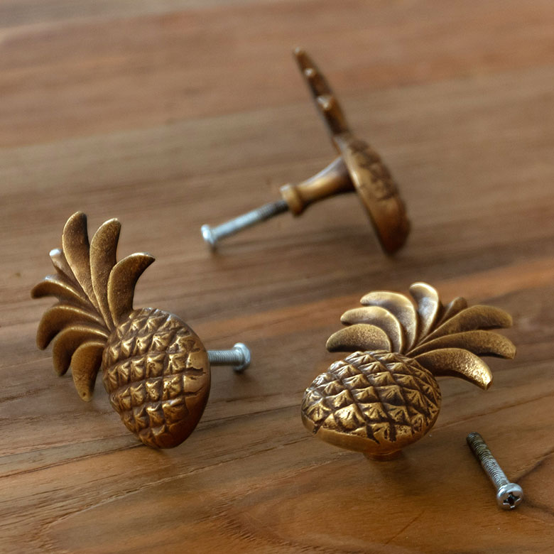 【最大2000円クーポン】 取っ手 パイナップル型 Mサイズ 幅4.5cm 高さ6.5cm アンティーク風 真鍮製 つまみ DIY 付け替え 引き出し 家具 ハンドル 真鍮ノブ アジアン 雑貨 アジアン雑貨 南国リゾート ハワイ バリ島 [13757]
