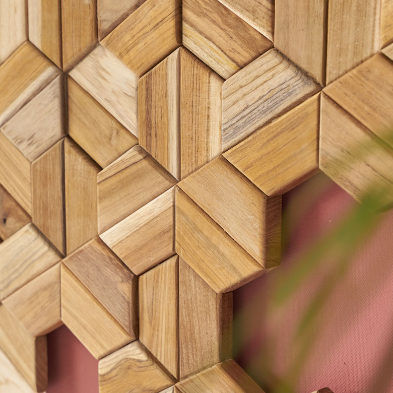よく一緒に購入されている商品収納スツール スツール チェア 椅子 いす イ17,800円木目調 フロアタイル サンプル Mocua シ99円フラワースタンド プランタースタンド 脚付き 8,900円 ■内容 56枚入り ■サイズ(cm) 1枚あたり:約 W 16 × D 16 × H 1.8 梱包サイズ:約 W 31 × D 30 × H 23 ※多少サイズは前後します。 ■重量 1枚あたり:約 0.15kg 梱包重量:約 10kg ■素材 チークウッド ■生産国 インドネシア ■ご注意 ※施工場所に搬入後、商品を箱から取り出して数日間置いておき、お部屋の環境に馴染ませてから施工する事をおすすめします。 ※開梱の際に、においが気になる場合は、一週間程度風通しの良い日陰に置いてからご使用ください。 ※施工に関するいかなる不良も当店は一切責任を負いかねます。 ※貼る前に一度、貼り付け面をきれいに拭いてください。油分や水分、ほこりや汚れがついている場所に貼ると、粘着効果が弱まり剥がれ落ちの原因となります。 ※接着強度を高めるために内装化粧材用のボンドと両面テープを併用して施工することをお勧め致します。 ※ハンドメイドのためサイズ・形・色合い・デザインには個体差がございます。 ※天然木のため、節・きず・多少の欠けが含まれる場合がございますが、品質には問題ございません。 ※表面に粗さが残っていたり、端・角がささくれているものも含まれる場合がございます。お取り扱いには十分ご注意ください。 ※防火認定は取得しておりません。 ※本製品は、室内用のため室外では使用しないでください。 ※適度な湿度(40-60%の間)を保てる場所で取り付けてください。 ※こちらの商品は、重量のある商品となっておりますので、搬入可能な場所(1F エントランス等)でのお引渡しとさせて頂く場合がございます。 ※工事現場への搬入つきましては、ご注文前に一度ご相談頂きます様お願い致します。 ※天然木製の商品となりますので、夏場は湿気を吸収する事で膨張し、冬場は湿気を放出する事で収縮します。そのため、冬場に施工する場合は気にならない程度に隙間をあけて、夏場に施工する場合は隙間をあけずに施工する事をお勧め致します。 ※下記のような場所での本製品のご使用はおすすめしません。 - 室温が50度を超える場所(暖炉のそばなど) - 湿気が多い場所(バスルームなど) - 砂壁・土壁・漆喰・古いコンクリートなど、粉が吹いているような面。 - 大きな凹凸のある面やカーブの付いている面。 - 不燃材ではありませんので、防火が必要な場所での使用は避けてください。 - 直射日光のあたる場所・・・退色したり板が反る場合があります。 - 落下防止のため、高い位置に施工する場合は、専門業者にご相談の上、安全を考慮した確実な施工を行ってください。 また上記以外にも施工できない(うまく接着できない等)場合がありますので、本番前に目立たない箇所で試し貼りをおすすめします。 ※賃貸など原状回復が必要な場所にはご使用頂けません。 ※こちらは壁専用です。床材としてはご使用頂けません。 ※施工後、よじ登ったり、荷重がかかるようなことはしないでください。 ※モニターの種類やパソコンの環境により、実際の商品のお色と若干異なる場合がございます。 類似商品はこちらウォールパネル 壁材 1枚 天然木 木製 木材280円ウォールパネル 壁材 1枚 天然木 木製 木材1,500円ウォールパネル 壁材 1枚 天然木 木製 木材1,500円ウォールパネル 壁材 10枚 天然木 木製 木12,500円ウォールパネル 壁材 10枚 天然木 木製 木12,500円ウォールパネル 天然木 オークウッド ウッドタ11,800円 ウォールパネル 天然木 チェリーウッド ウ14,800円ウォールパネル 天然木 ブラックウォールナット12,800円3D ウォールパネル 天然木 壁材 ウッドパネ2,990円~新着商品はこちら2025/11/19アートパネル おしゃれ モダン 45×60 ア2,750円2025/11/19アートパネル おしゃれ モダン 45×60 ア2,750円2025/11/15クリスマスカード ポップアップ 立体 おしゃれ590円再販商品はこちら2025/11/20アートプランツ ラタン 籐 枝 フラワーアレン1,580円2025/11/20チークウッドの輪切りコースター 皮なしタイプ 290円2025/11/20ココナッツシェルの花型デコレーショントレイ か330円2025/11/20 更新 貼るだけ!天然木パネルで、かんたん壁リフォーム 貼るだけ簡単、本格リフォーム! 天然チークウッドのウォールパネル <ヘキサゴンデザイン/56枚セット> 手軽な壁紙やリメイクシートもいいけど 憧れるのはやっぱり天然木の板壁。 天然チークウッドを使ったこちらのウォールパネルは 天然木特有のリアルなテクスチャーで、お部屋を何ランクもセンスアップ。 魅力のポイントは、本物ならではの高級感・重厚感と 接着材や両面テープで「壁に貼るだけ」の手軽さ。 そして、壁一面に敷き詰めるだけでなく、少量を使って アートのようにアクセント使いできる、デザイン性の高さも魅力の1つ。 簡単&本格的な壁DIYアイテムを、是非お楽しみください。 ※こちらは56枚セットでの販売ページとなります。 単品販売はこちら > \動画