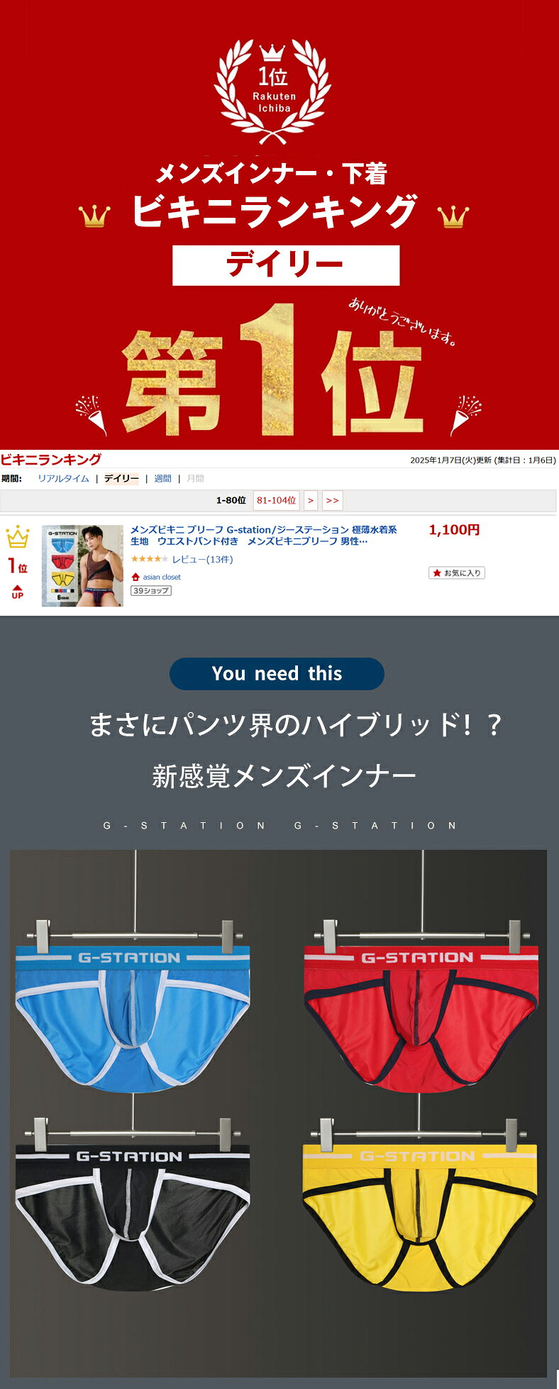 商品概要 商品説明 まさにパンツ界のハイブリッド!? 今まで寄せられた 「こんなパンツが欲しい」というお客様の声を掛け合わせて作った 『アジアンクローゼット』完全監修のメンズインナーです。 2018年1月に発売した「極薄水着系生地 ボクサー」のウエストバンド付きビキニブリーフバージョンです。 ご好評いただいた優れた伸縮性から生み出されるバツグンのフィット感、原色に近いハッキリ鮮やかなカラーリングはそのままです。 薄手の生地に浮かび上がるボディーラインや、フロントの自然なモッコリ感により、健康的でセクシーな雰囲気に仕上げてあります。 ツルツルとした滑らかな肌触りが気持ちよく、汗やムレなどの不快な水分を直ぐに大気に放出する速乾性にも優れています。 極薄の生地が身体の動きに合わせて縦横無尽に伸縮し、まるで第二の肌のように体に違和感なくフィットする独特の履き心地をぜひ!!お試しください。 ブランド名 G-Station/ジーステーション 商品名 極薄水着系生地 ウエストバンド付き ビキニブリーフ スタイル ビキニブリーフ フロントポーチ 立体縫製、フロントフルシーム、前開きなし 素材/産地 ポリアミド84%、スパンデックス16%/中国(日本企画) サイズ目安 適応ウエストサイズ目安cm(ウエスト):S68-76、M76-84、L84-94、XL94-104、XXL104-114 注意点 ■サイトに掲載されている商品は、モニター環境により実際のものと素材感・色が若干異なって見える場合がございます。加工具合により掲載画像との誤差が見られる場合もございます。予めご了承くださいますようお願い申し上げます。 ■当商品は衛生管理上の理由によりご着用の有無にかかわらず、商品お届け後のお客様都合によるご返品、及びサイズ交換はお受けできません。ご了承くださいませ。 ※不良品・お届け商品間違いの場合のみ返品/交換をお受けいたしております。 プレゼント