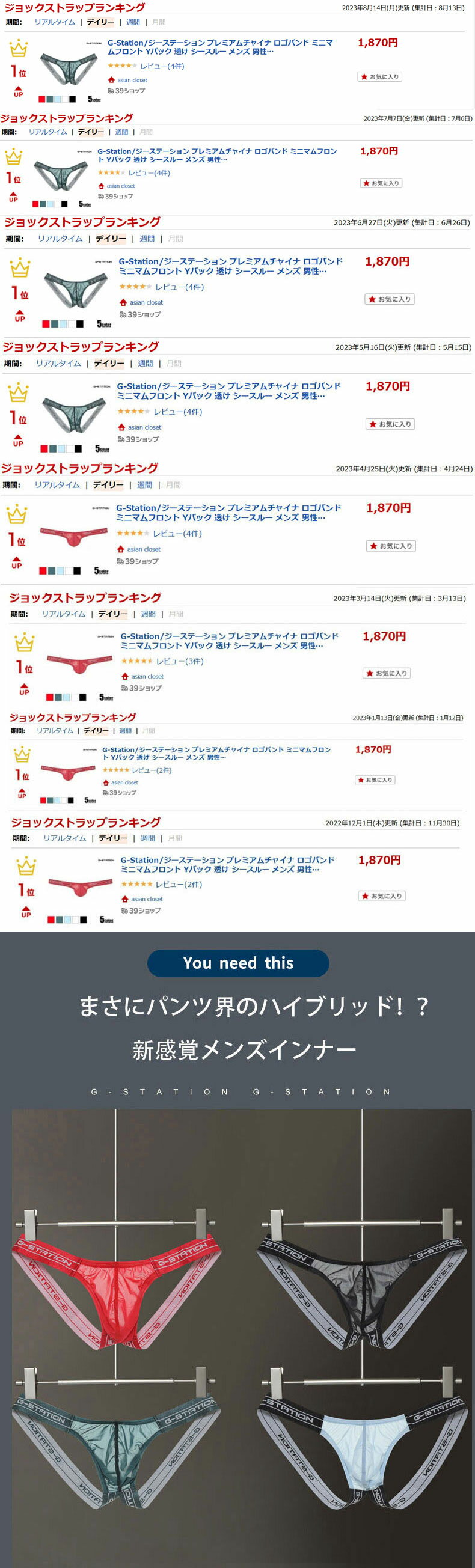 G-Station/ジーステーション プレミアムチャイナ ロゴバンド ミニマムフロント Yバック 透け シースルー メンズ 男性下着 パンツ PERFECT SEE-THROUGH