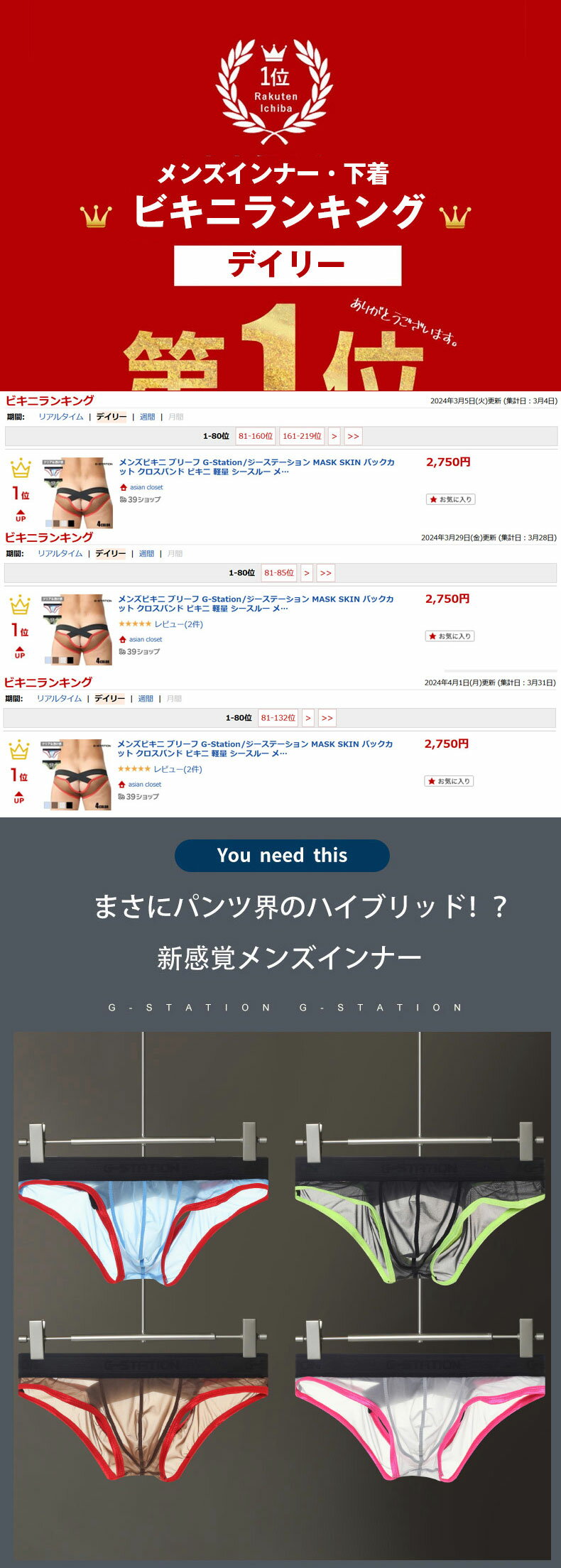 メンズビキニ ブリーフ G-Station/ジーステーション MASK SKIN バックカット クロスバンド ビキニ 軽量 シースルー メンズ 男性下着 透け メンズビキニ マスクスキン Oバック