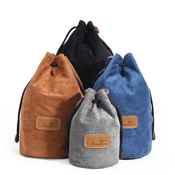 【Sサイズ】一眼レフ ミラーレス一眼レフ 交換レンズ用 クッション付き ソフトレンズケース 収納ポーチ レンズポーチ ふわふわ裏地でショック吸収率大幅アップ 巾着タイプ 単焦点レンズ ズームレンズ マクロレンズ