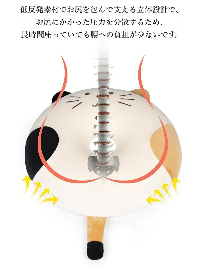 【商品仕様】 〇カラーバリエーション:4種類 ホワイト/ベージュ/ピンク/グレー 〇サイズ:40×40×6.5cm 〇素材:カバー:ポリウレタン 芯材:低反発ウレタン ※寸法は個体差により1~3cmの誤差がある場合がございます。 ※海外製品のため縫製品質が日本とは異なり、糸のほつれが見られる場合や、糸の始末ができていない場合がございます。予めご了承ください。 ■硬めのの低反発素材 厚みがあり硬めの低反発で身体の重心をとらえます。 座るとゆっくり沈み込むので程よい座り心地です。 ■座った時の姿勢をサポート 座ると真ん中の穴に向かって沈み込み、背筋を伸ばしてくれるクッションです。 腰が怠くなる方や姿勢が気になる方、産後や時で普通に座るのが辛い方にお勧めします。 ■カバーは洗濯可能 フリースのような肌触りが滑らかで優しい素材のカバー。 汚れたらカバーを洗濯機で洗えるので、いつでも清潔をキープできます。 ※中身の芯材は洗えません。 ■とってもキュートな猫ちゃんデザイン お耳と尻尾が可愛い円座クッション。もっちりとした肌触りに癒され、お部屋を可愛く演出します。 お部屋でもオフィスでもご使用いただけます。 関連キーワード: 円座クッション クッション 腰痛対策 椅子 円座クッション 腰痛クッション 健康クッション 骨盤サポート 骨盤矯正 人間工学 健康 猫背 体圧分散 腰楽 術後 妊婦 出産 自宅 オフィス 車 出産ギフト 丸型 姿勢矯正