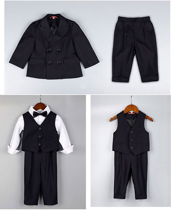 子供服 韓国子供 子供スーツ フォーマルスーツ ジャケット シャツ ベスト パンツ 蝶ネクタイ ストライプ 縞模様 4点/5点/6点セット 男の子 イベント 礼服 発表会 宴会 演奏会 ピアノ ステージ衣装 誕生日 プレゼント 入園 入学 卒業 合唱 団体服 キッズ 子供 男の子 写真撮影